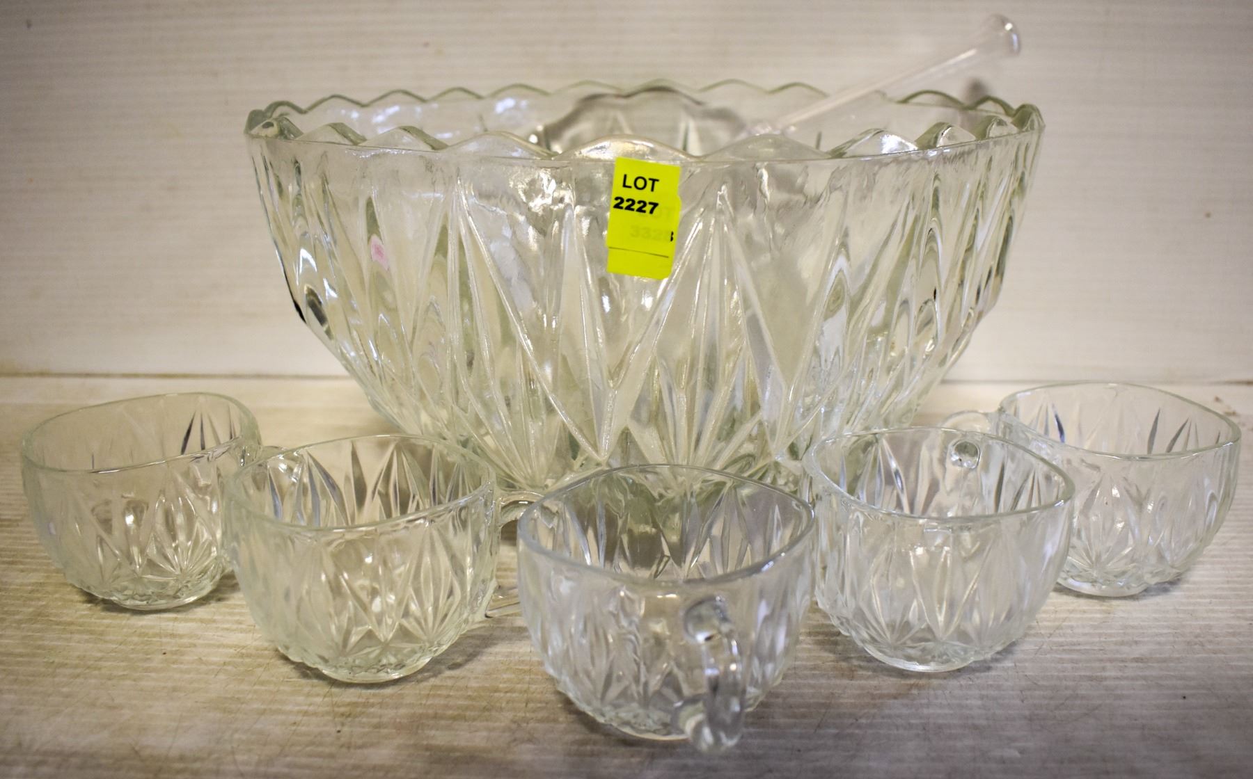 GLASS PUNCH BOWL W/ 5 GLASSES