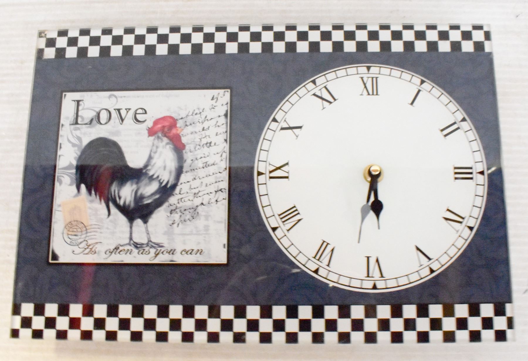 GLASS ROOSTER CLOCK 8.5 X 12 (BATTERY INCLUDED )