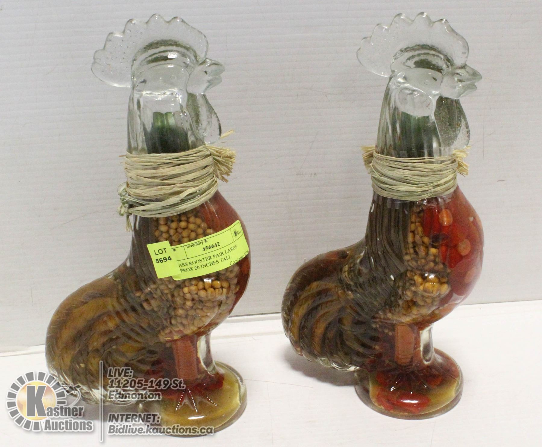 UNIQUE FILLED DECORATIVE GLASS ROOSTERS SET