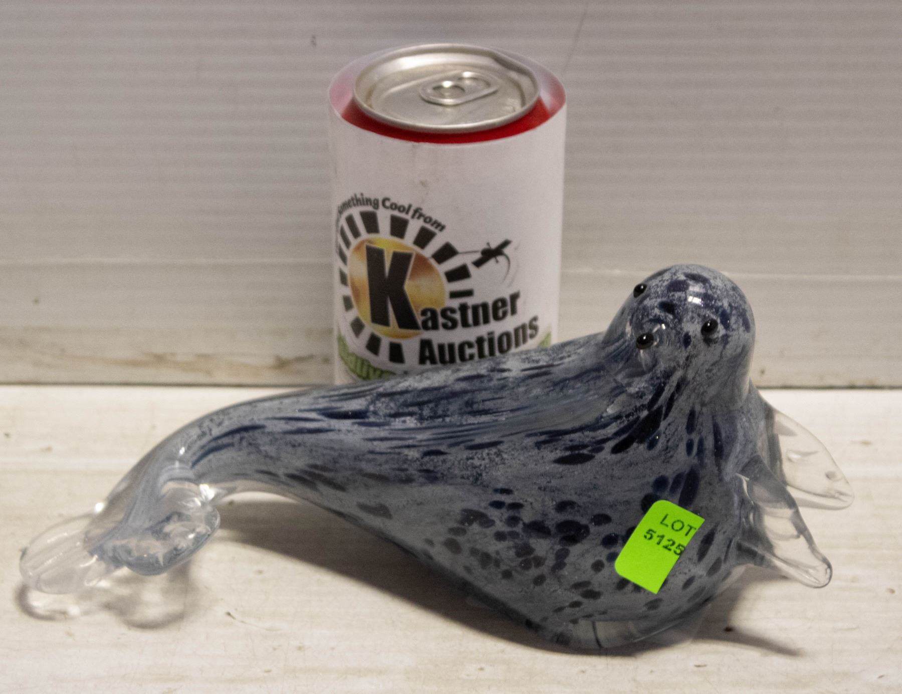 GLASS SEAL SCULPTURE, GREY/BLUE, APPROX..