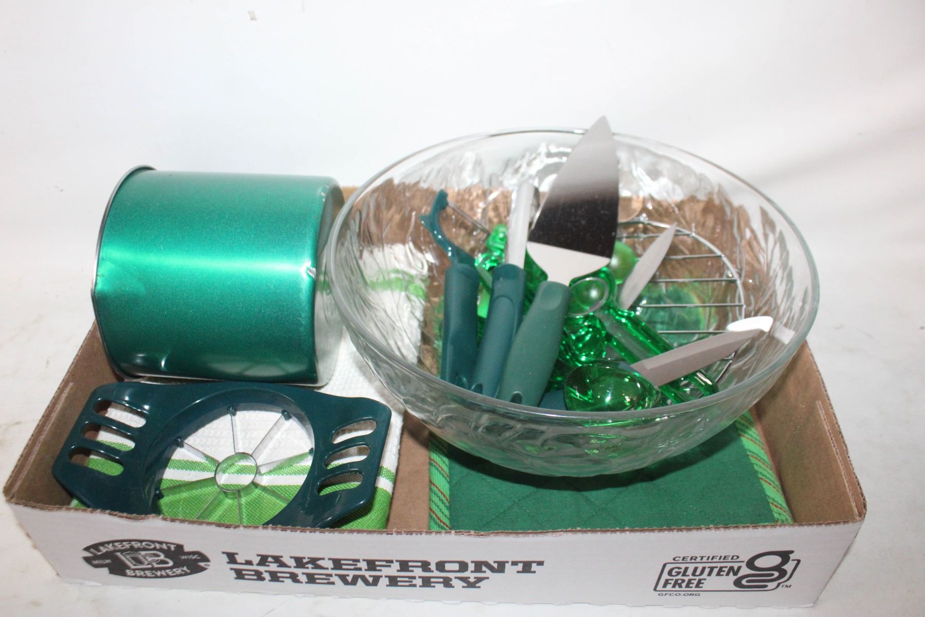 GLASS SERVING BOWL, GREEN KITCHEN UTENSILS &