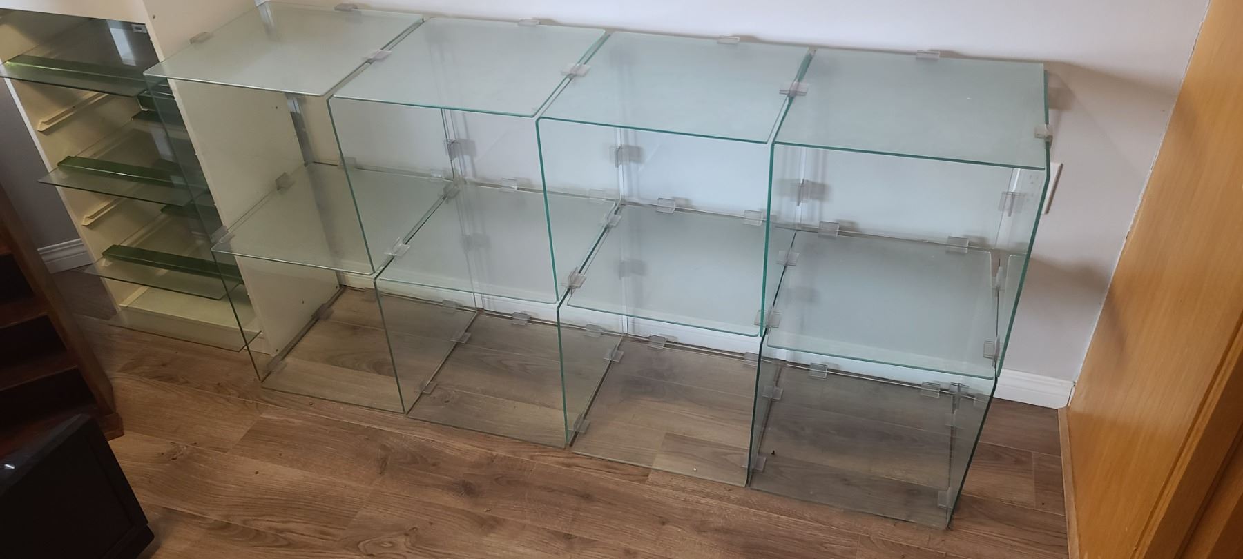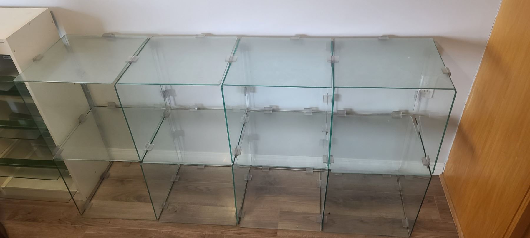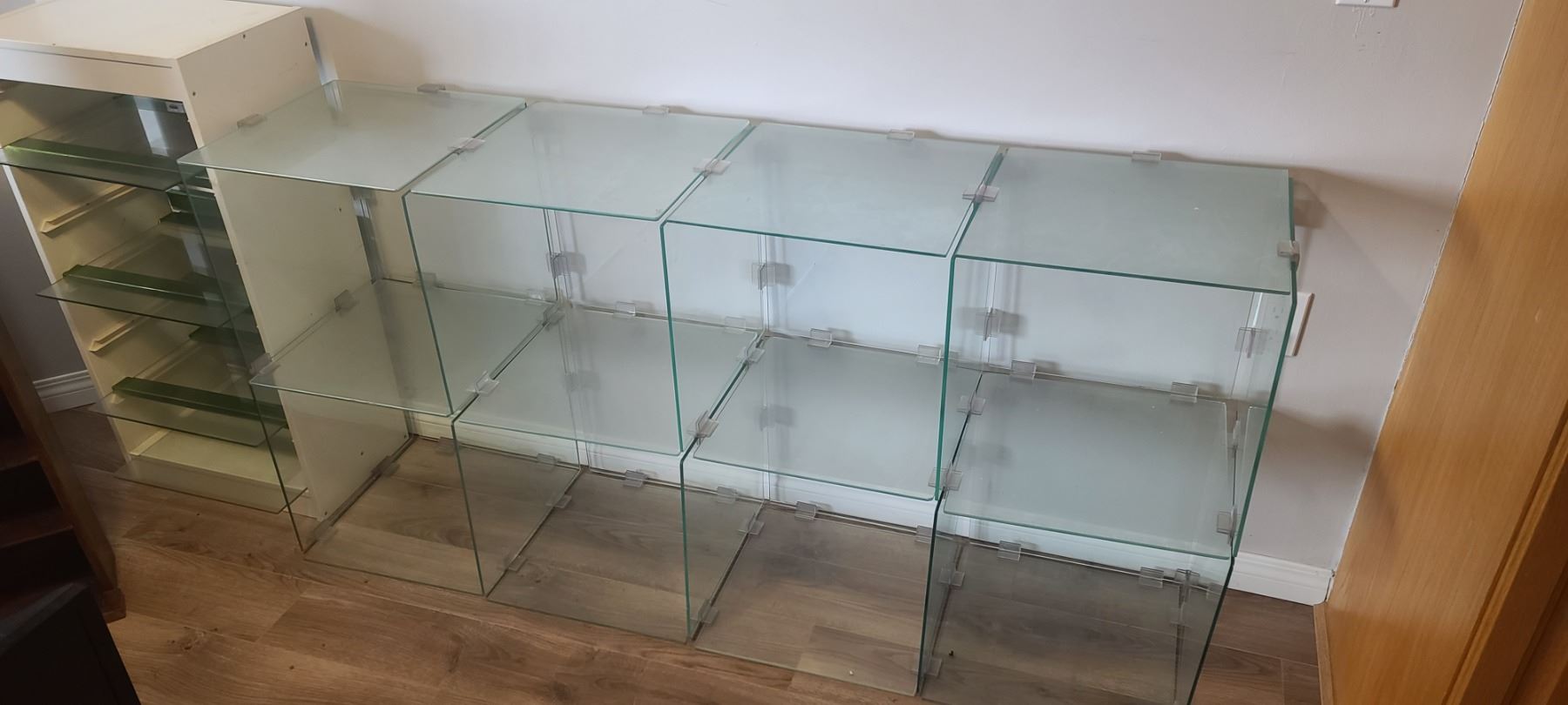 GLASS SHELVING UNIT ADJUSTABLE HEIGHTS/LENGTH - DO NOT SUGGEST SHIPPING