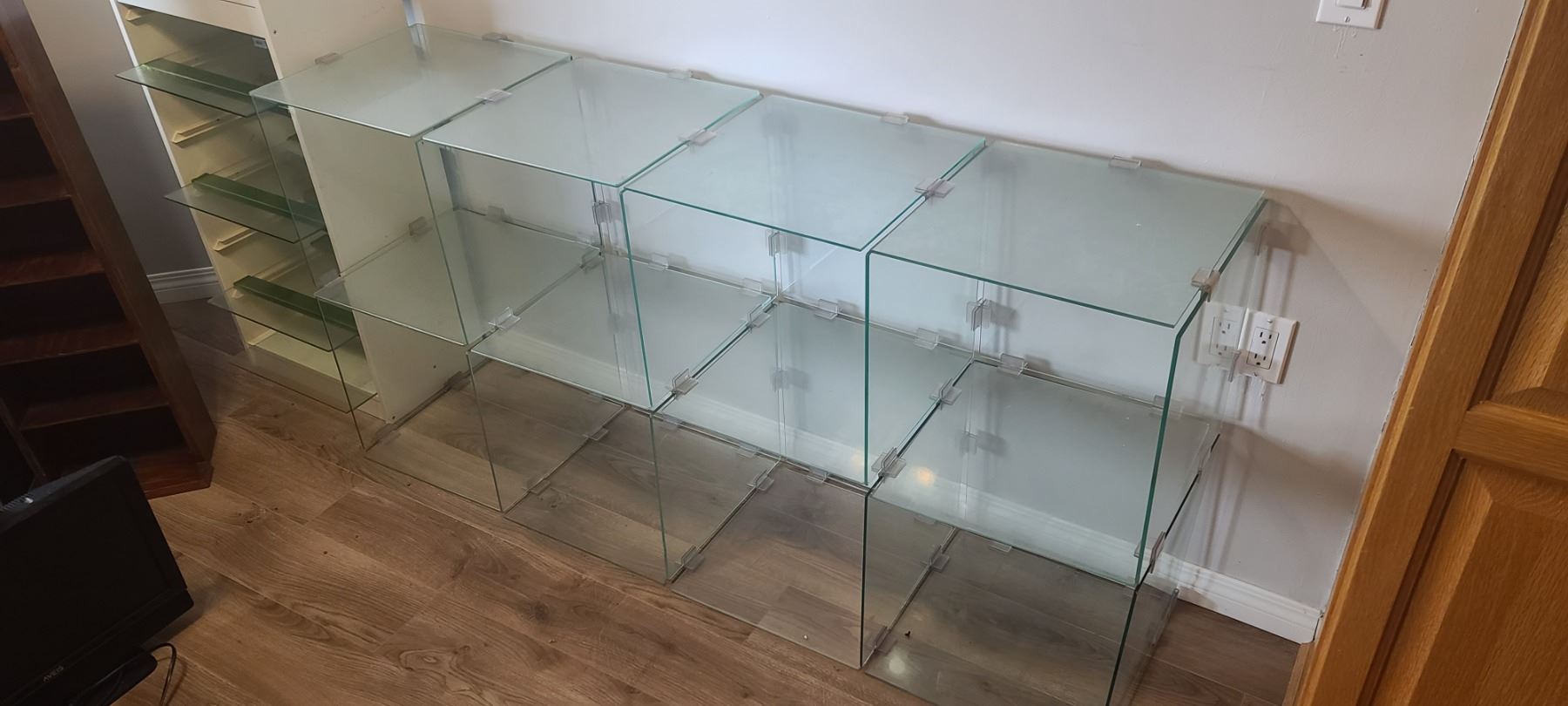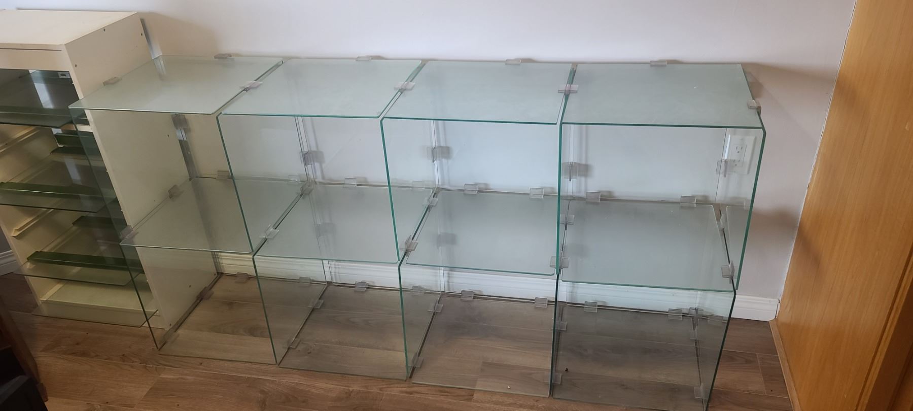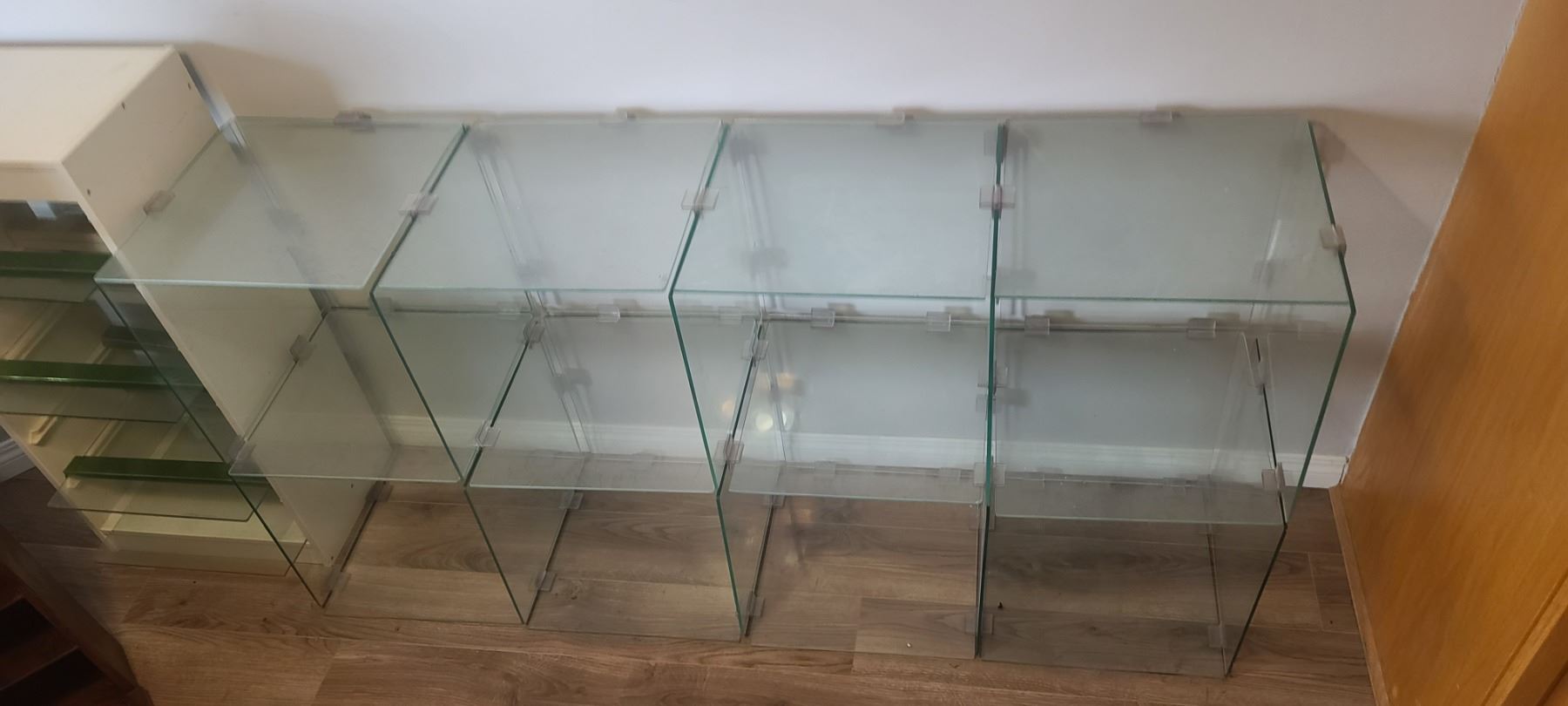 GLASS SHELVING UNIT ADJUSTABLE HEIGHTS/LENGTH - DO NOT SUGGEST SHIPPING