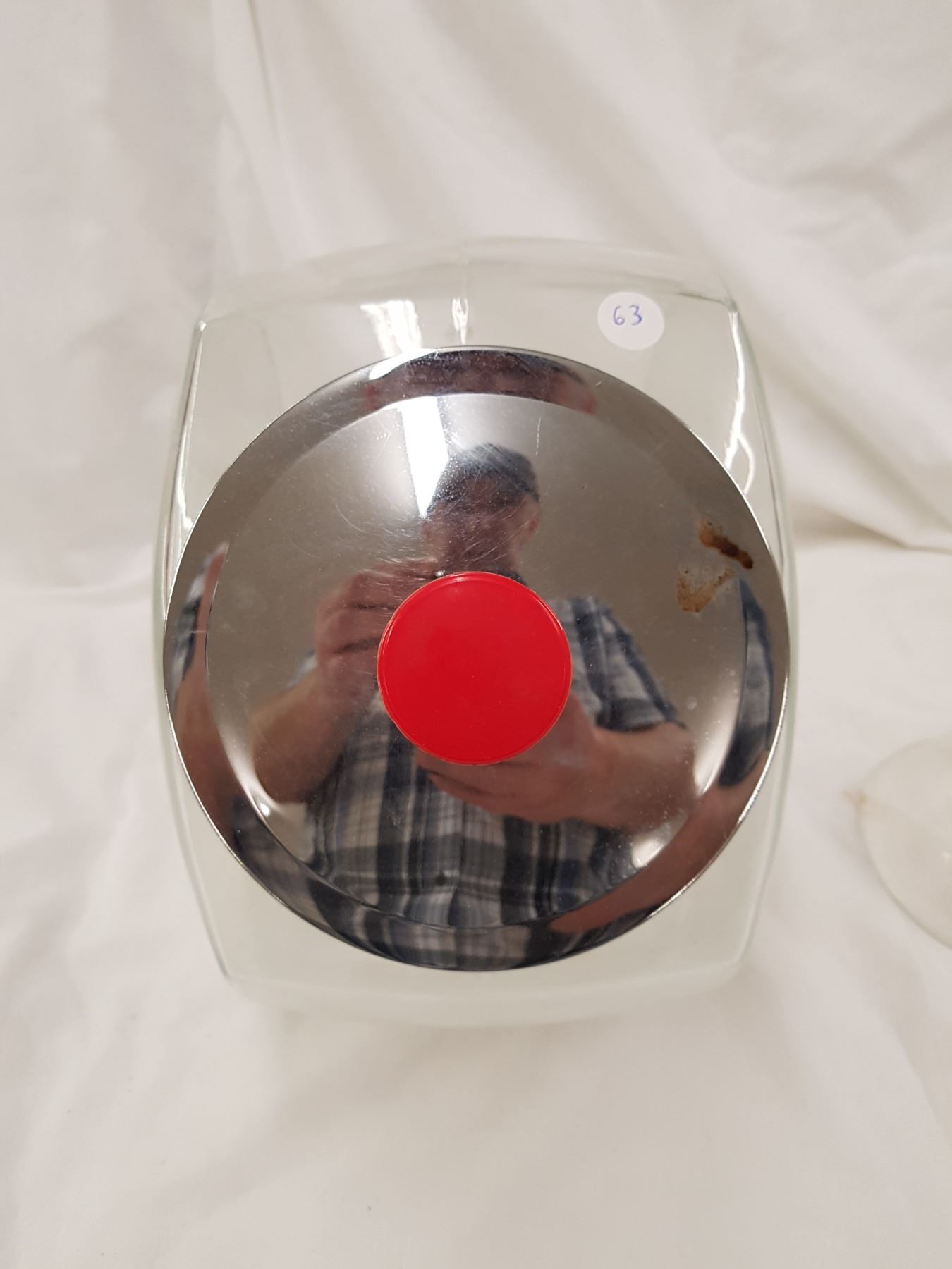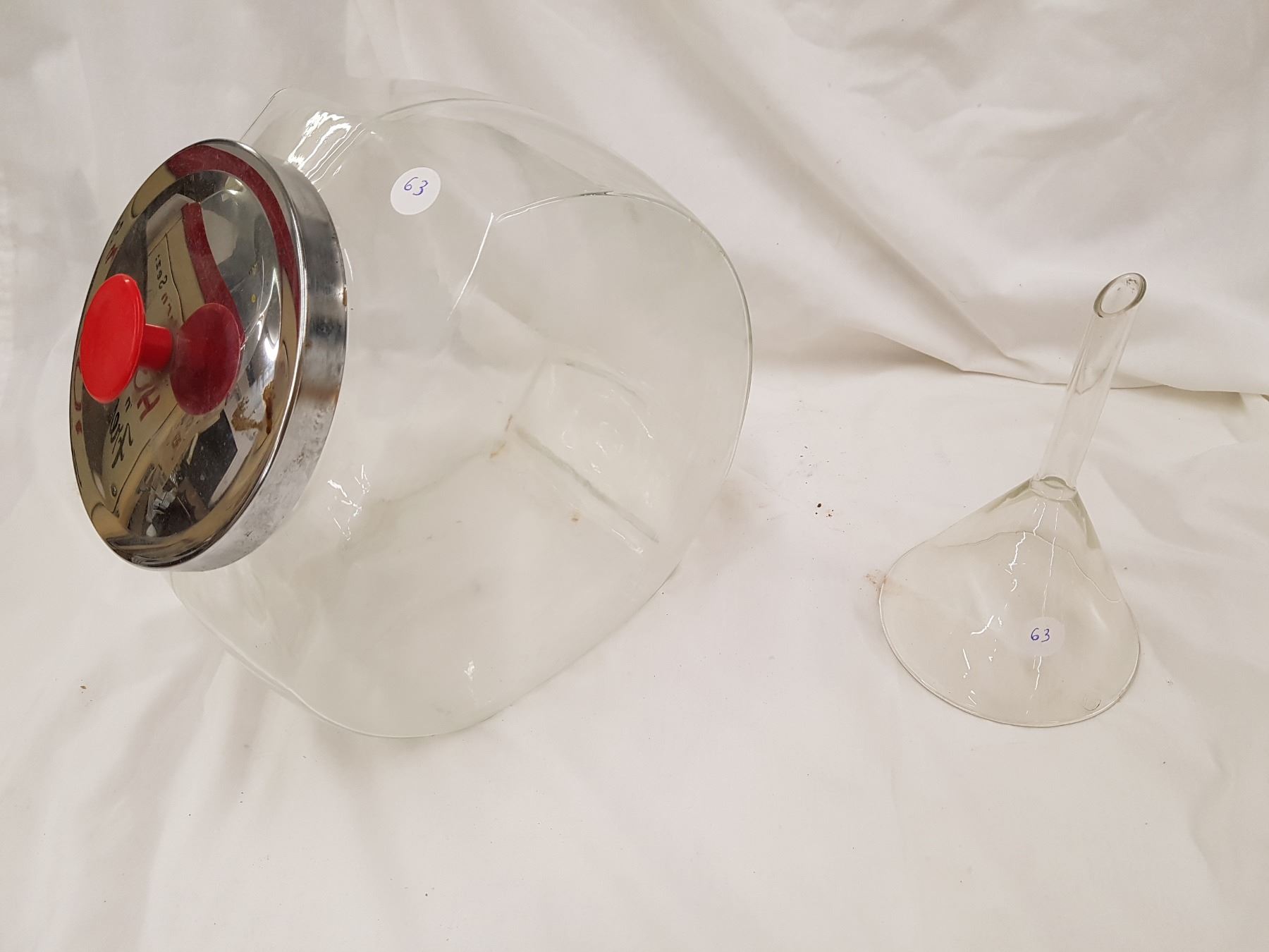 GLASS STORE CANDY JAR & GLASS FUNNEL