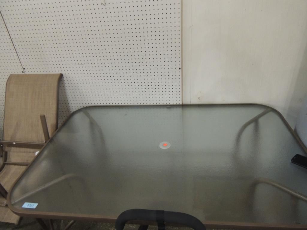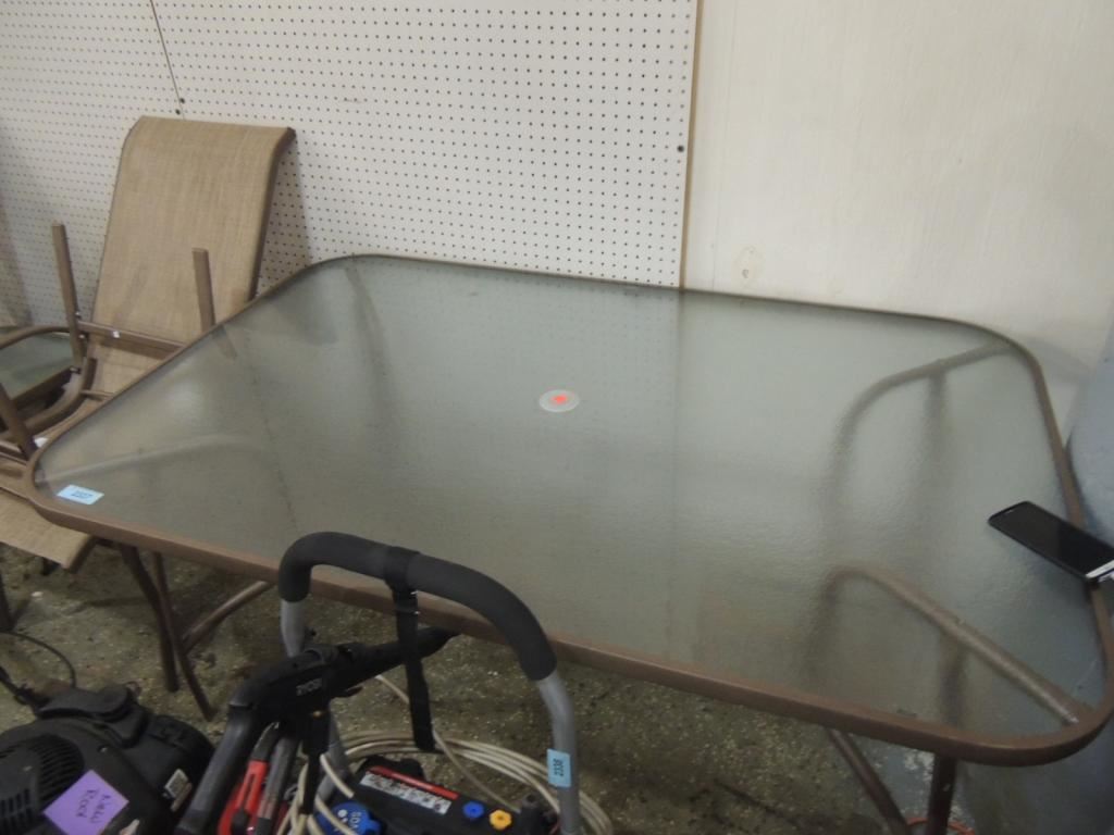TEMPERED GLASS LARGE PATIO TABLE RECTAGLE TABLE, GLASS TOP TABLE, OUTDOOR FURNITURE AS SHOWN SEE PHOTO FOR MORE DETIALS.