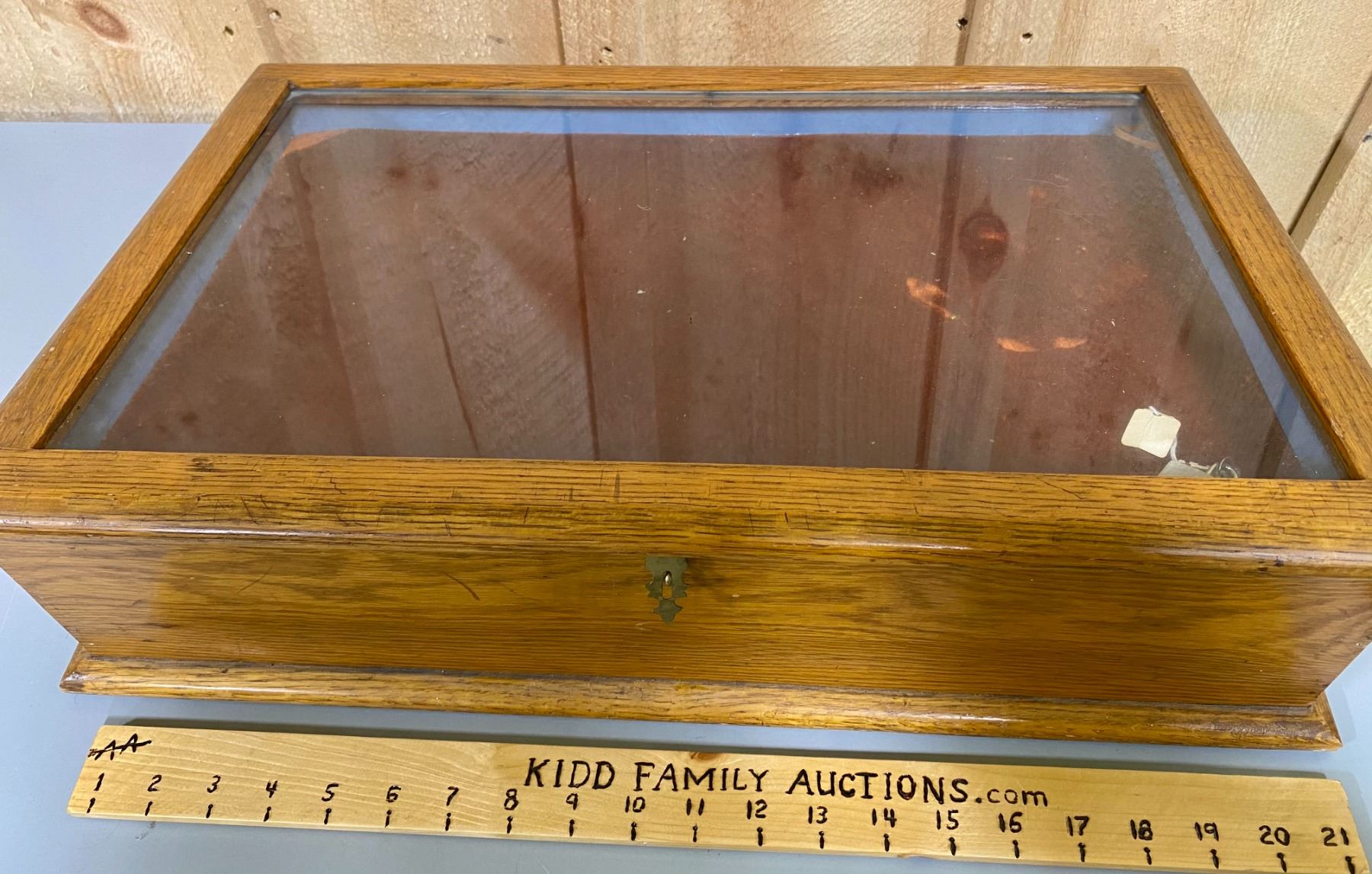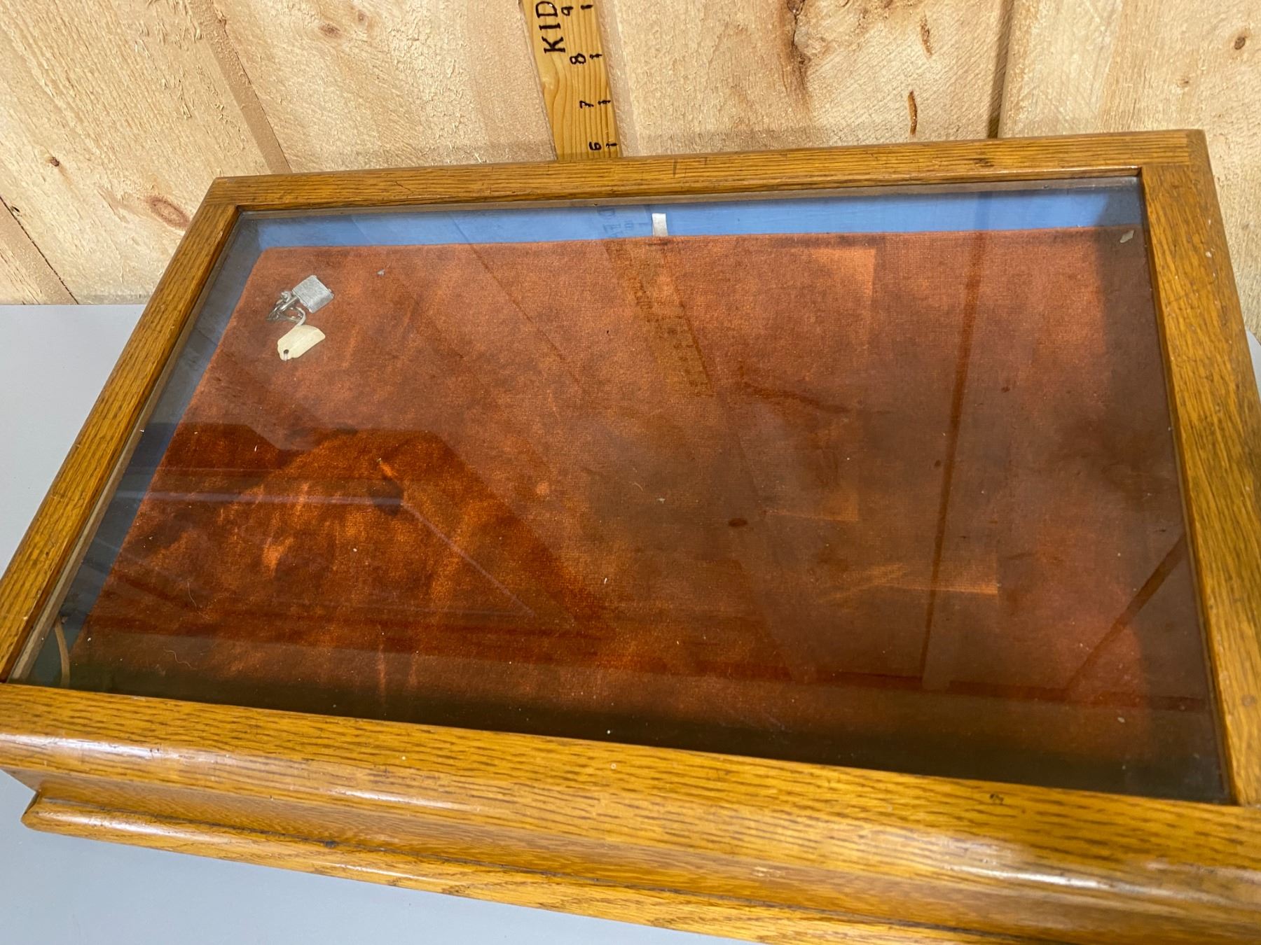 GLASS TOP VELVET LINED OAK DISPLAY CASE