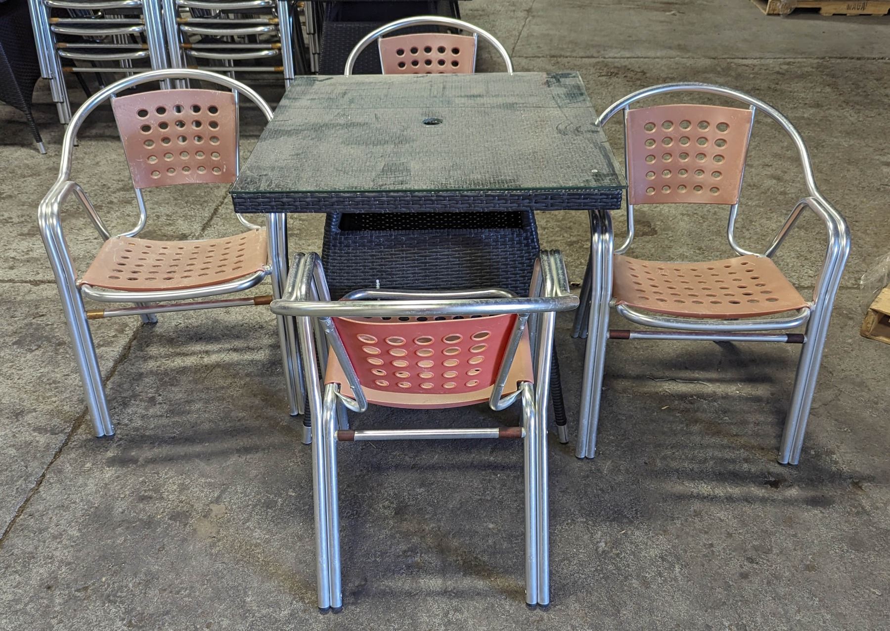GLASS TOP WOVEN PATIO TABLE W/ 4 ALUMINUM &