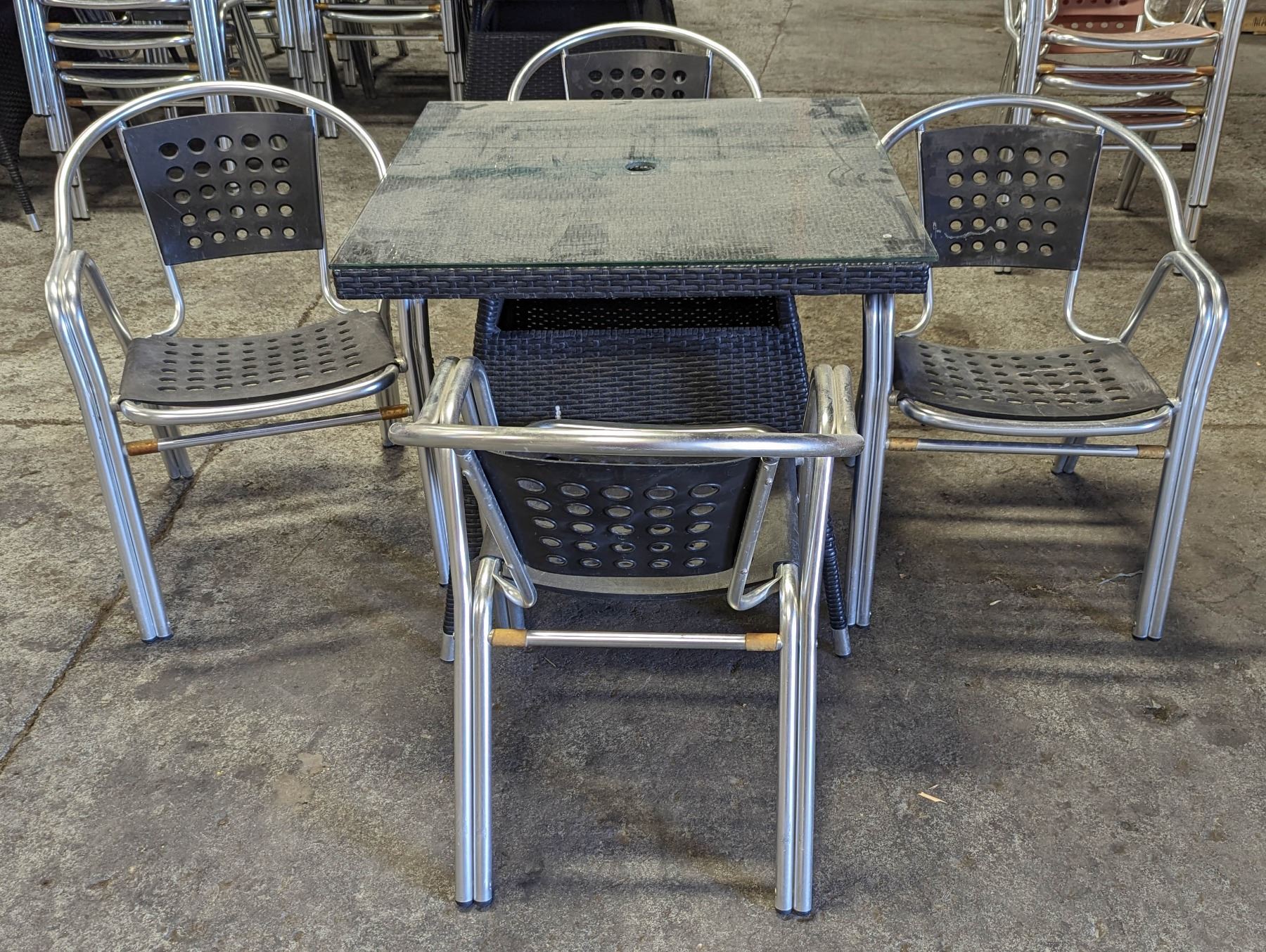 GLASS TOP WOVEN PATIO TABLE W/ 4 ALUMINUM &