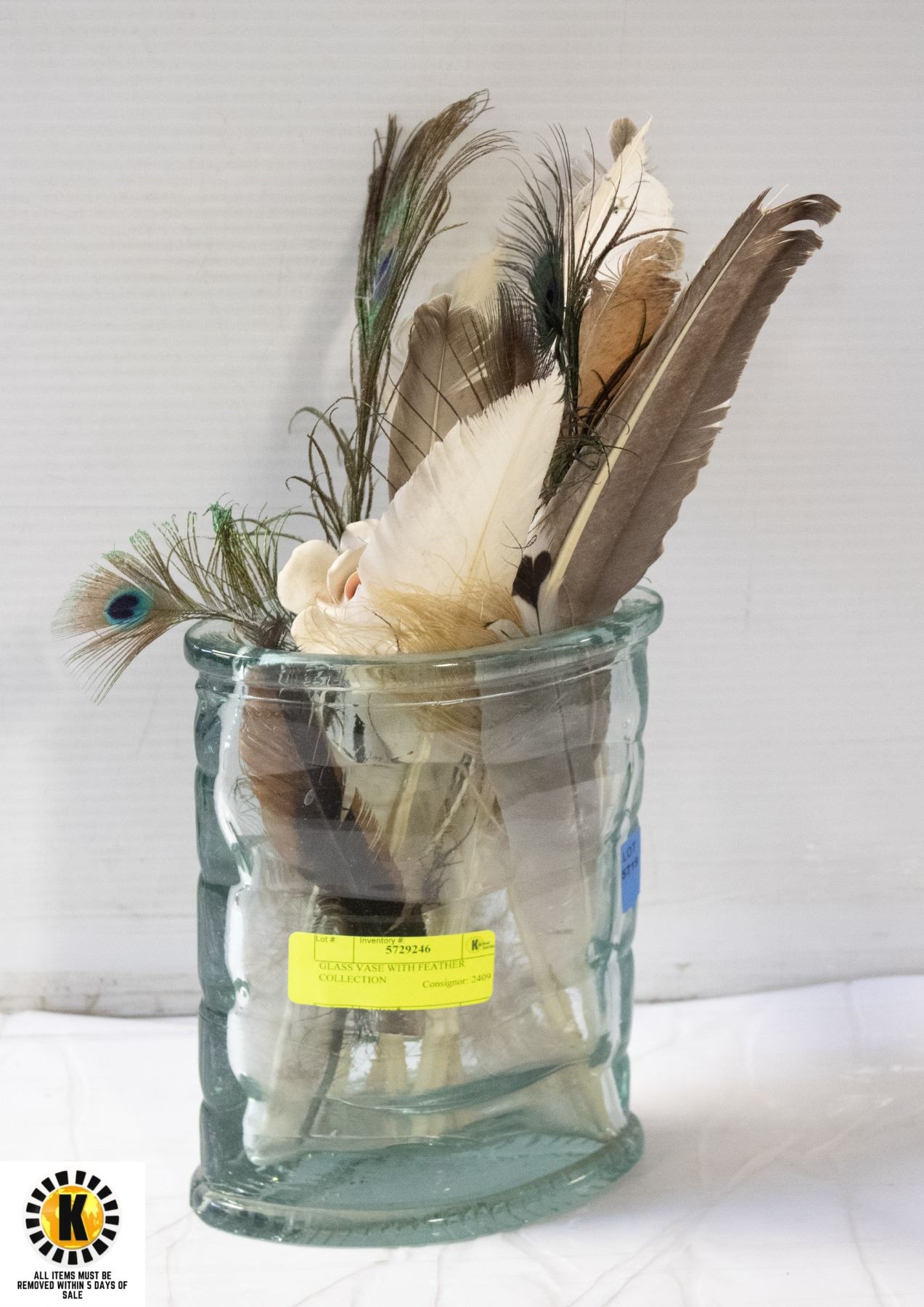 GLASS VASE WITH FEATHER COLLECTION