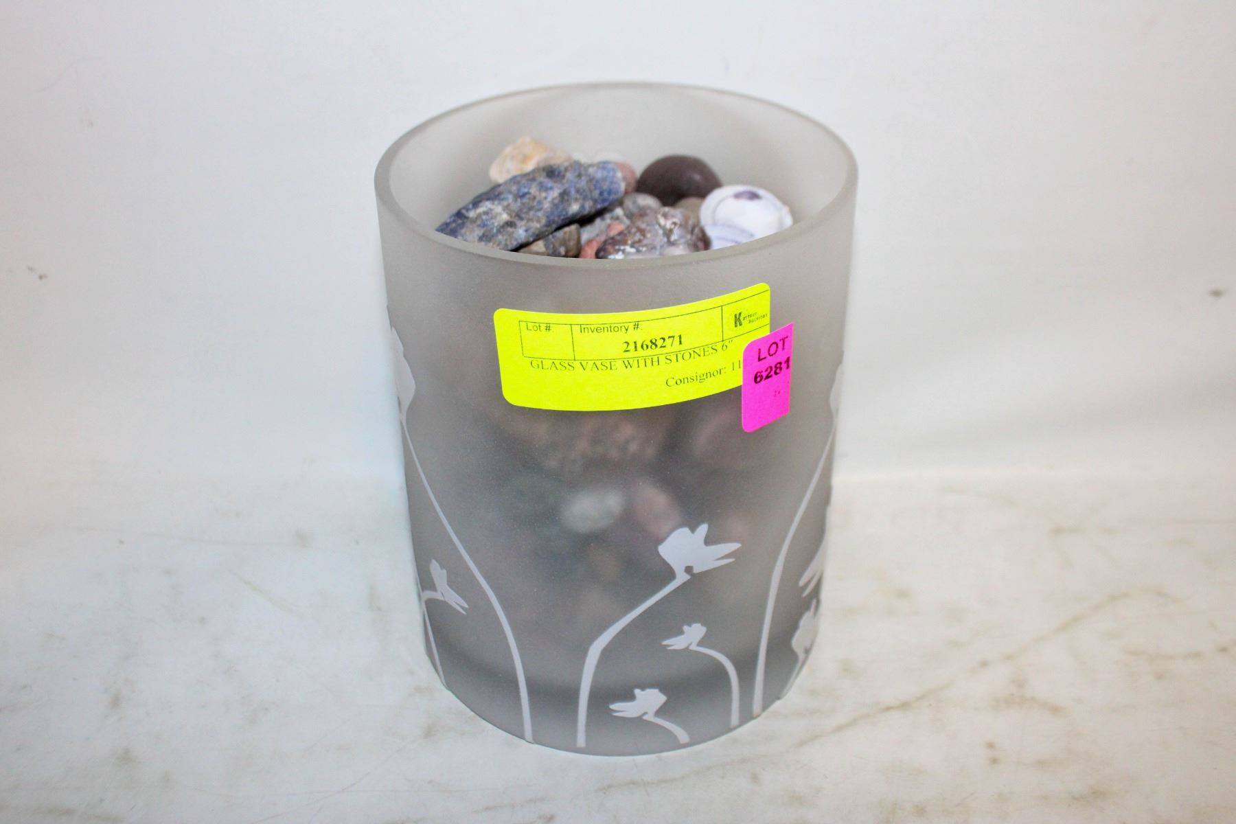 GLASS VASE WITH STONES 6"
