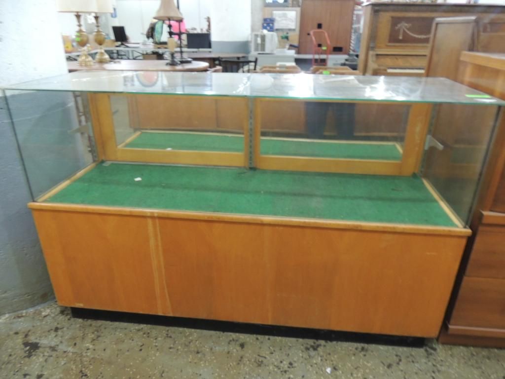 DISPLAY CABINET CRACK IN GLASS LARGER DISPLAY. 60X 20X38 AS SHOWN SEE PHOTO FOR MORE DETAILS