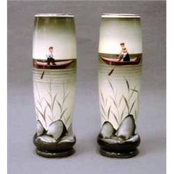 1 PAR VASER, OPALIN, MÅLAD DEKOR AV ROENDE POJKE OCH FLICKA, C. 1900, H30