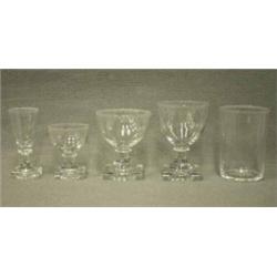 GLASSERVIS 58 DELAR, EMPIRSTIL, KOSTA, 12 RÖDVINS, 12 VITVINS-, 12 GROGG-, 11 SNAPS-, 11 SHERRYGLAS, UTSVÄNGD KUPPA, BANDDEKOR AV SLIPADE OVALER