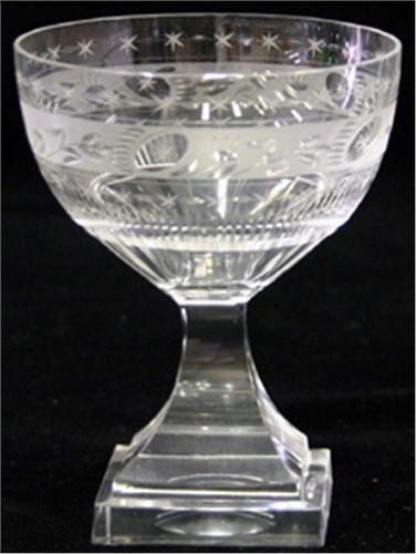 12 STARKVINSGLAS, KVADRATISK FOT, KUPAN MED SLIPAD GUSTAVIANSK DEKOR, H11