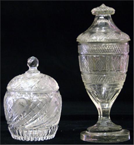 BONBONJÄR MED LOCK, SLIPAD KRISTALL, LOCKURNA, KRISTALL, 1800-TAL, H12+22 (LOCKURNA BOTTENNAGG)
