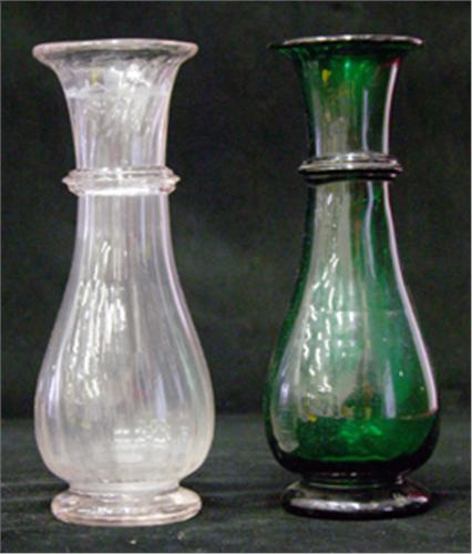 2 VASER, EN VRIDEN, KLARGLAS, 1 GRÖNTONAD, DANMARK 1800-TAL, H21