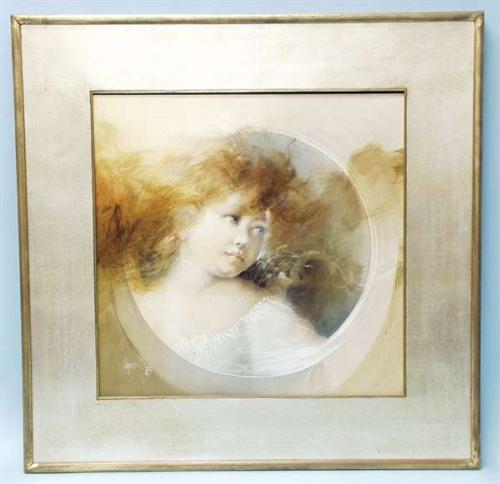 GLAUCO CAPOZZOLI - Contemporary Italian School. "Portrait of a Young Girl". Oil on carton panel. Signed and dated '85, lower left. 17 3/4" x 17 3/4". In gilt frame. 2000-2500