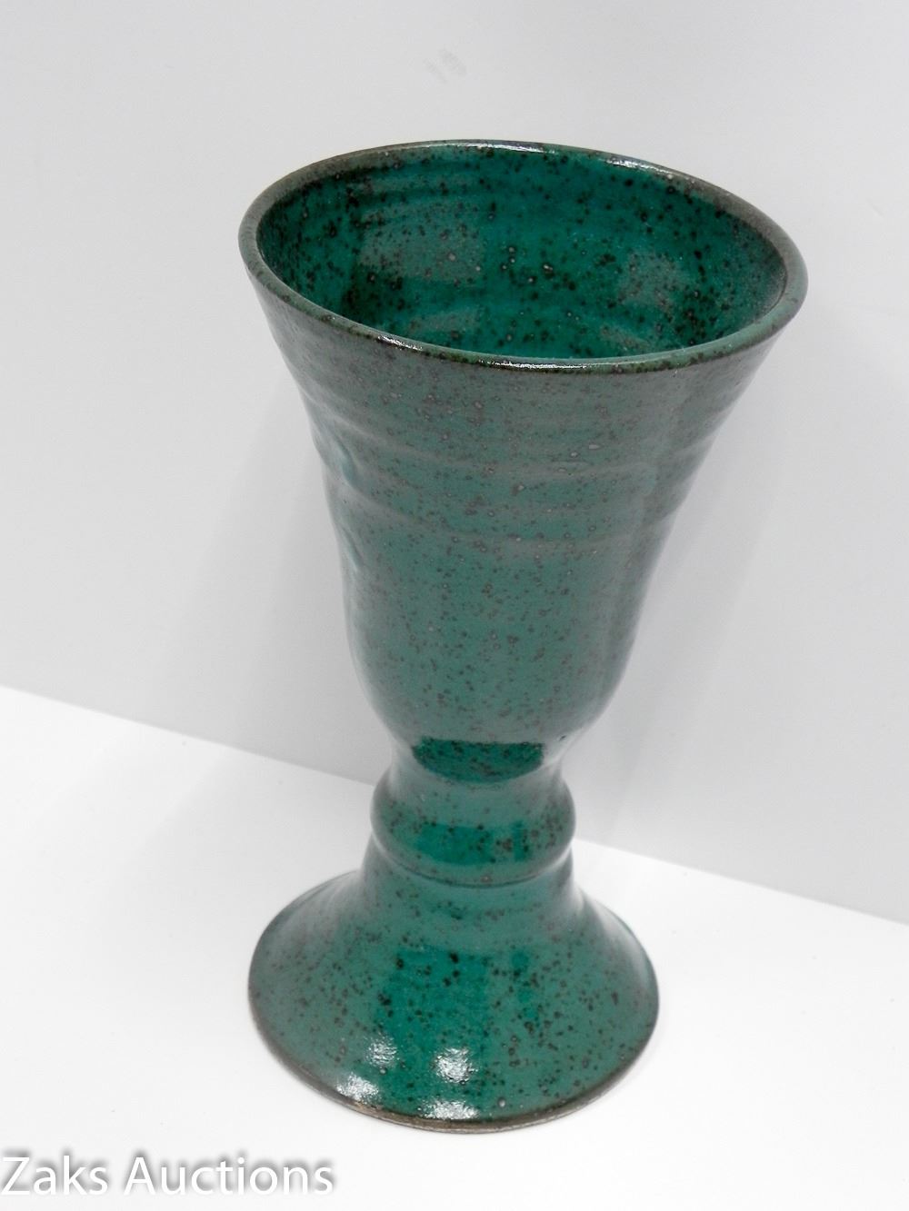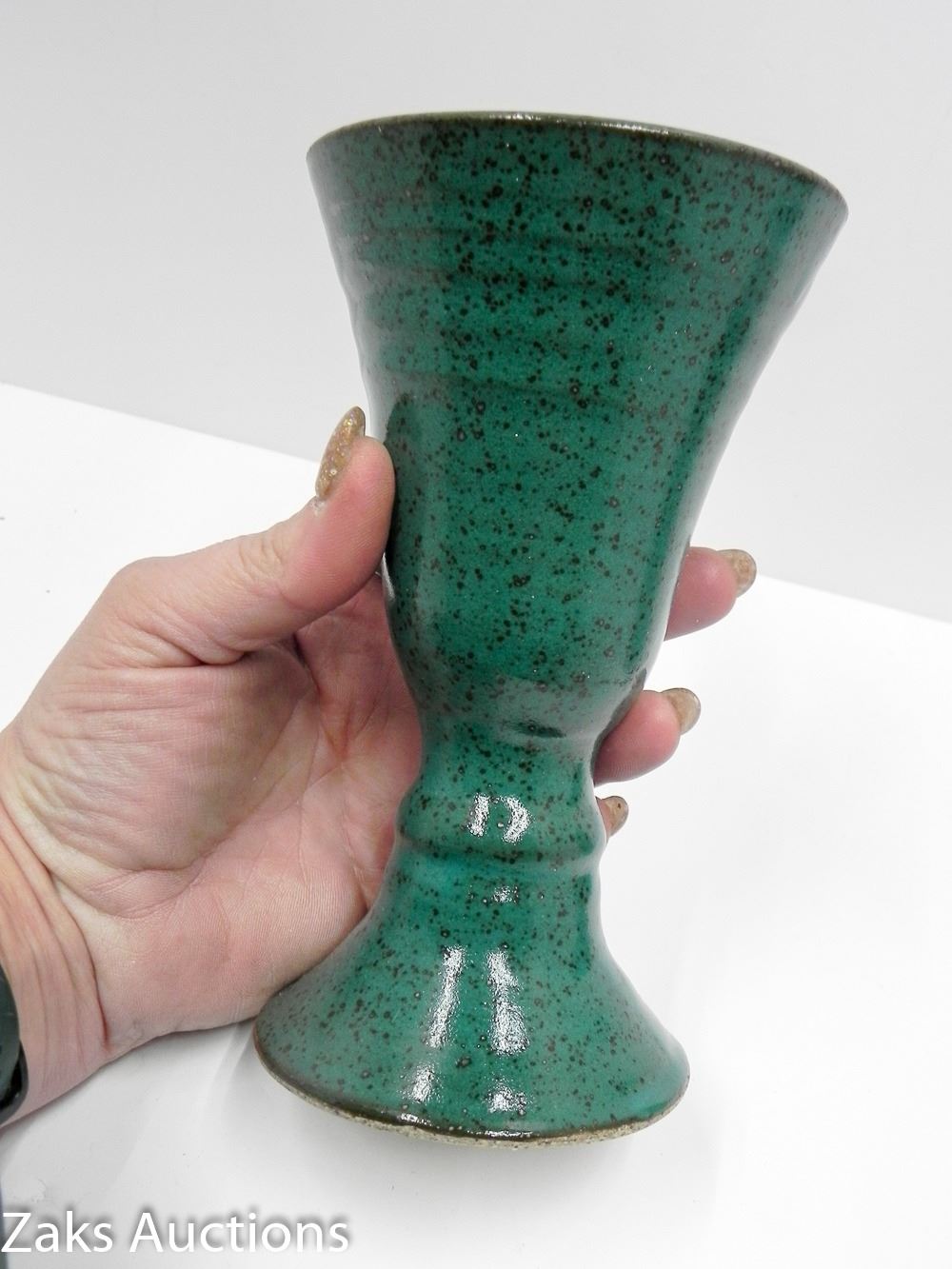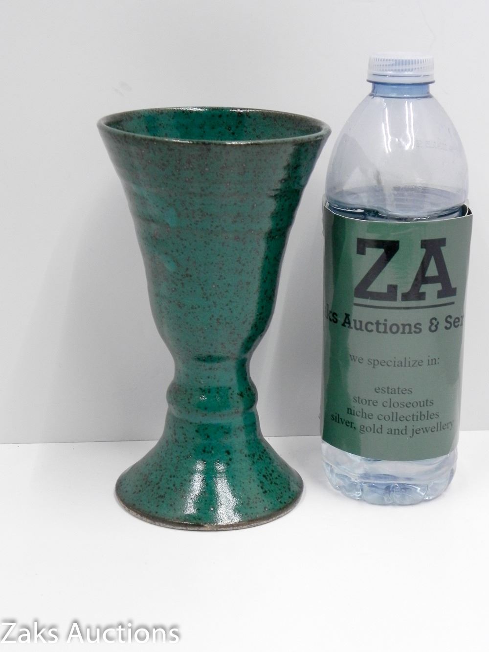 GLAZED TURQUIOSE GREEN SPECKLED POTTERY GOBLET