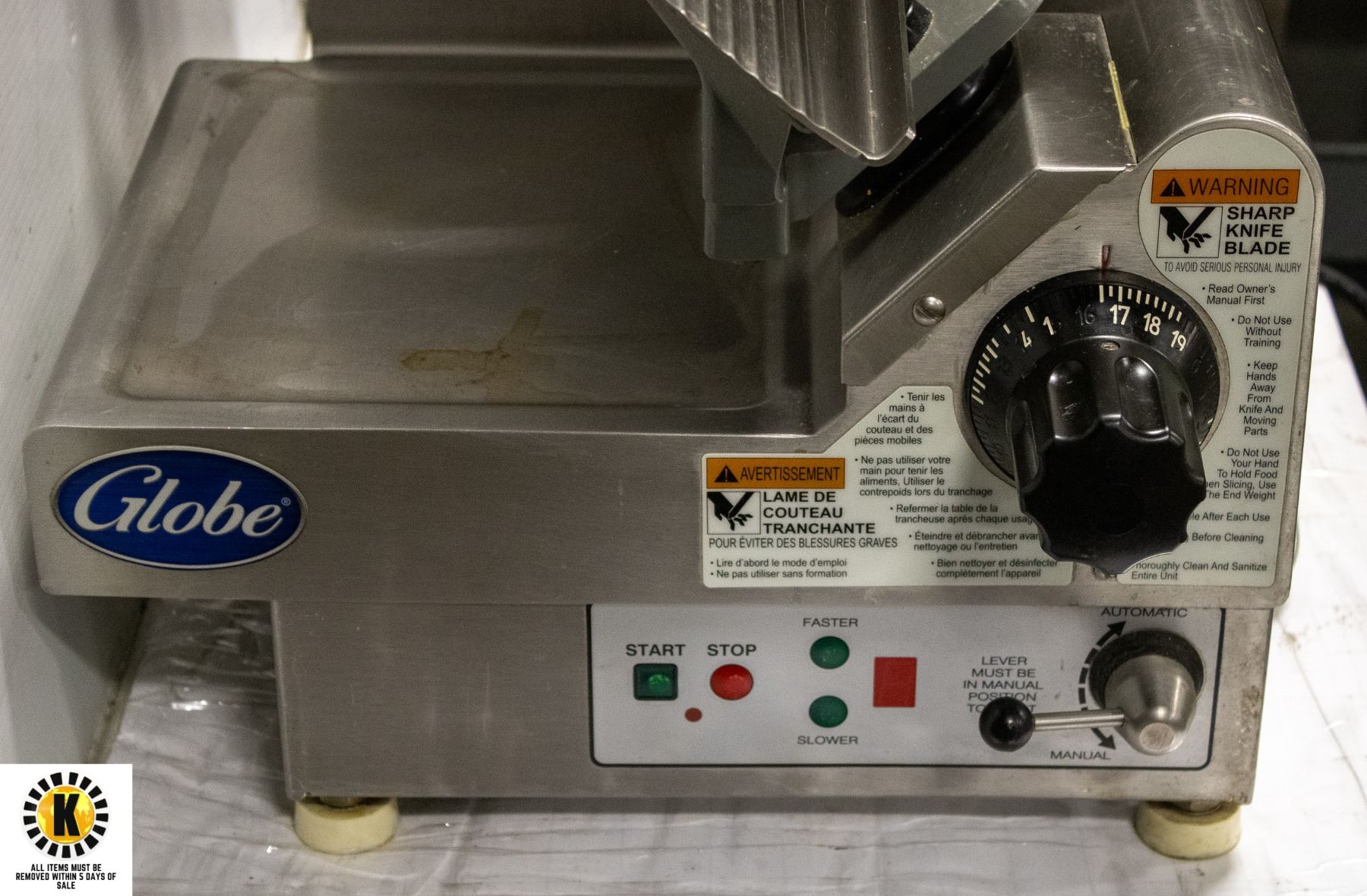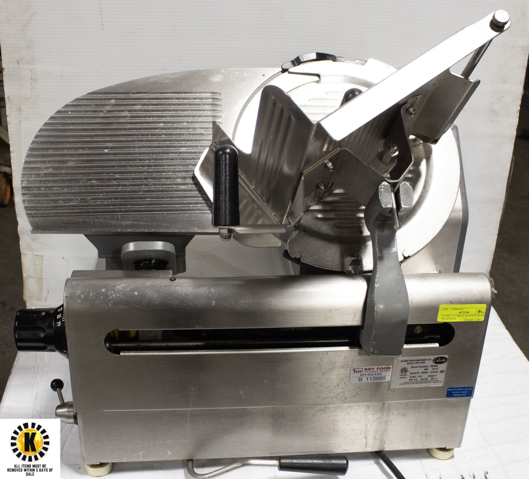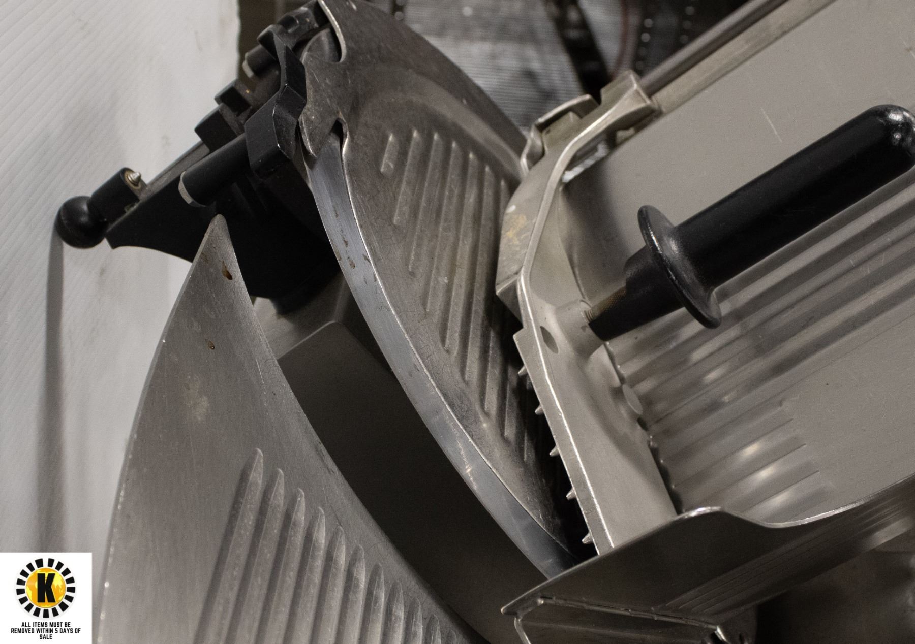 MODEL # 3850N, 115 VOLTS, 7 AMPS, 1/2 HORSE POWER, 60 HZ, PHASE 1, APPROX 22" X 15" X 21" * MISSING PUSHER SCREW * ** BLADE SHARPENER IS BROKEN IN MULTIPLE SPOTS ONE SHARPENING STONE IS MISSING HALF OF THE STONE **