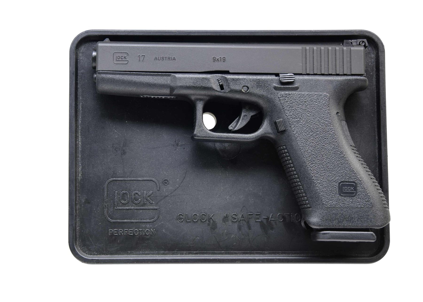 Cal. 9X19 S# AYD076US. Bbl. 4.61", with fixed front sight and adj. rear sight. Standard model with matte black finish. Standard frame with left-side slide release and magazine release. MAGS: two 13-rd. UNATTACHED ACCESSORIES: factory "tupperware" box, paperwork, cleaning brush, and magazine loader. CONDITION: near excellent overall condition, with approximately 98% of the original finish remaining on the slide. Bore is bright with strong rifling. PROVENANCE: the lifelong collection of Terrence McCarty. (24-173/MD) MODERN. $300-$500.