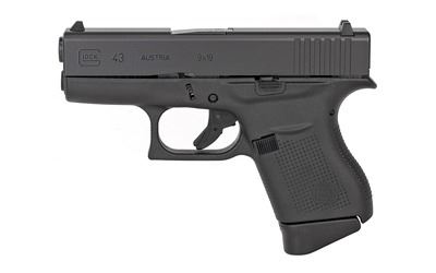 Glock, 43, Striker Fired, Sub Compact, 9MM, 3.41" Barrel, Polymer Frame, Matte Finish, Fixed Sights, 6Rd, 2 Magazines
