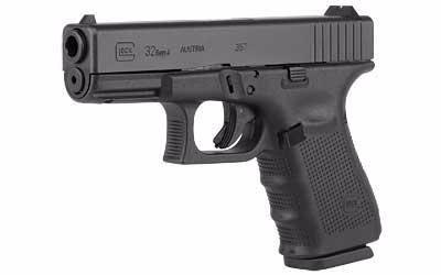 The compact Glock 32, in .357 Sig Sauer, offers a unique combination of versatility, convincing ballistics, optimum carry comfort, and the Glock pistol reliability. The modular backstrap design lets the user adapt the grip to hand size, and the frame surface exhibits the scientifically-designed Gen4 rough textured technology. This model features a dual-recoil spring assembly that substantially increases the life of the system, and the enlarged reversible magazine catch easily accommodates left- or right-handed operators. The Generation 4 frame retains the Glock accessory rail for accessory attachment. FAMILY:G32 Series MODEL:G32 G4 TYPE:Semi-Auto Pistol ACTION:Safe Action FINISH:Gas Nitride STOCK/FRAME:Polymer Frame STOCK/GRIPS:Black Polymer CALIBER/GAUGE:357 Sig CAPACITY:10+1 # OF MAGS:3 MAGAZINE DESC:10 rd. BARREL:4.02" OVERALL LENGTH:6.85" SIGHTS:Fixed SAFETY:3 Safeties GUN CASE:Plastic