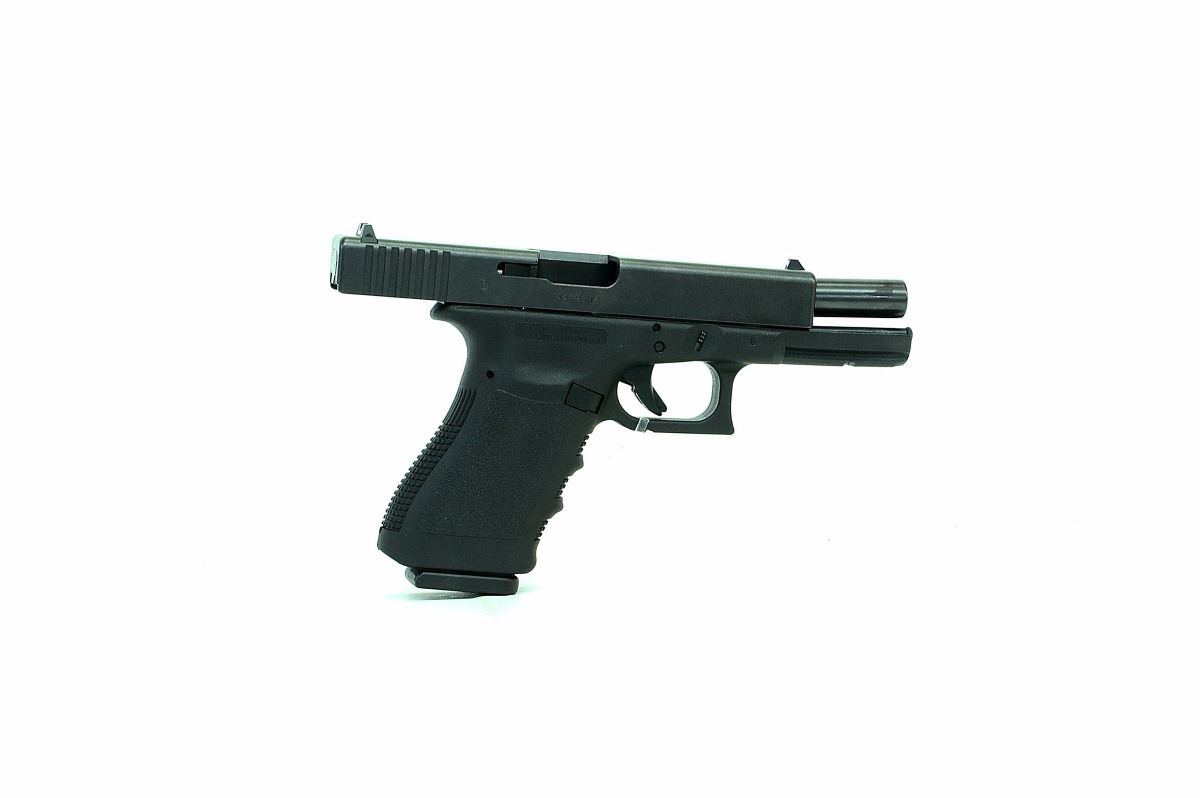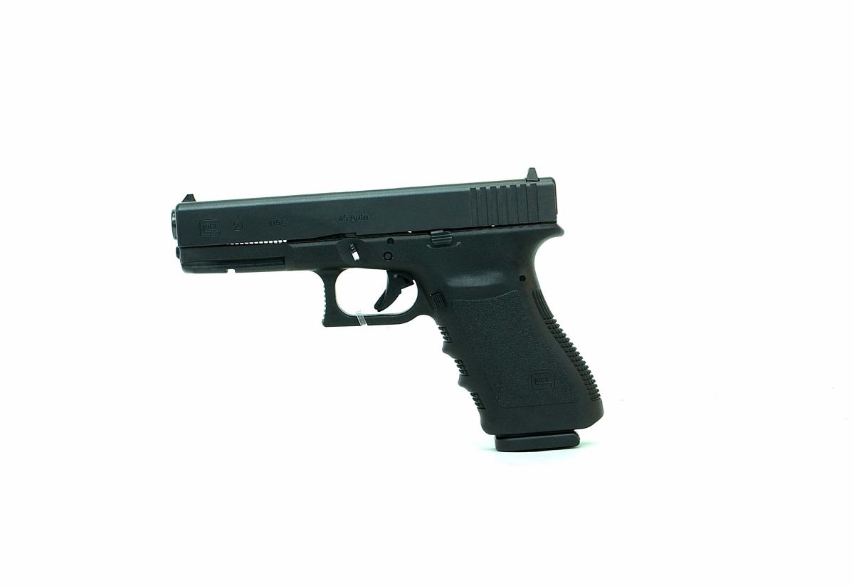 STOCK 2255HR-0550-G1 GLOCK, MODEL 21, CAL .45, 2 MAGS, PLASTIC CASE, MADE IN U.S.A, CONDITION 8.5/10, SN.AAFRXXX