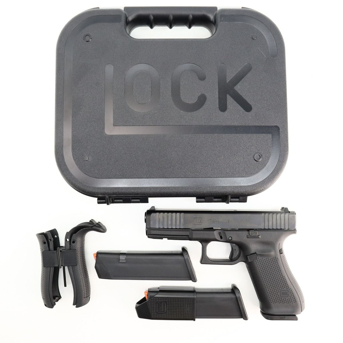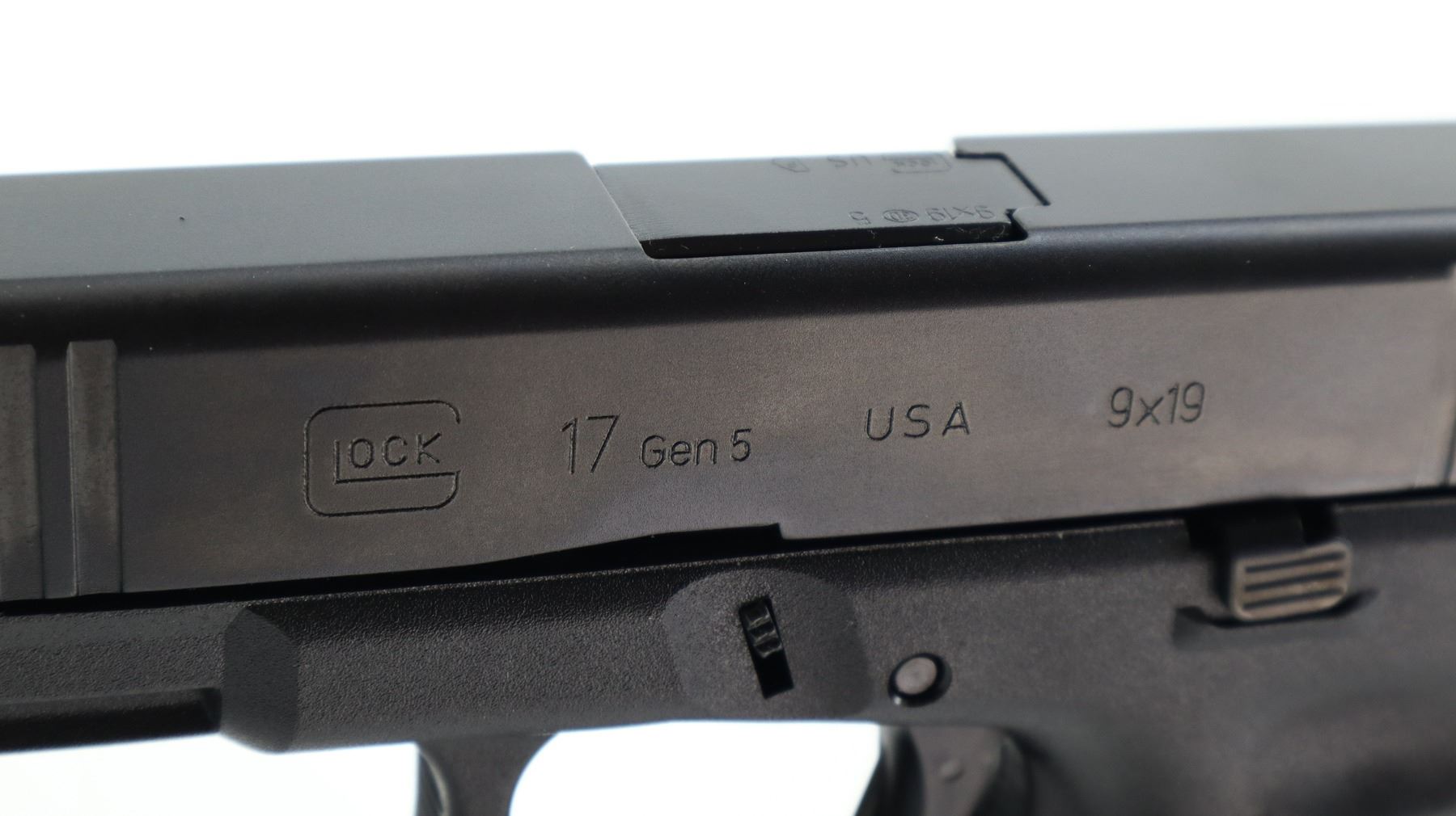 AS NEW IN BOX , GLOCK , MODEL: MODEL 17 Gen5 , CALIBER: 9 X 19. COMES WITH 3 MAGAZINES, MAG LOADER, CASE, MANUAL, CABLE LOCK & 4 ACCESSORY GRIP STRAPS. BORE IS EXCELLENT. APPEARS AS NEW IN BOX, MAY HAVE BEEN TEST FIRED IN FACTORY. WHITE DOT FRONT SIGHT, FIXED REAR SIGHT. STIPPLED GRIPS.. ACTION: SEMI AUTOMATIC. BARREL LENGTH: 112MM. SERIAL # AEVN092. CONDITION: AS NEW IN BOX. CLASS: CANADIAN RESTRICTED CLASS