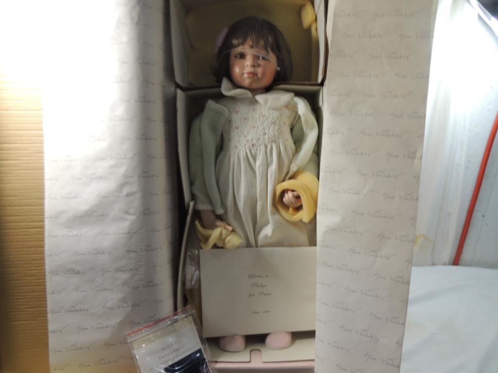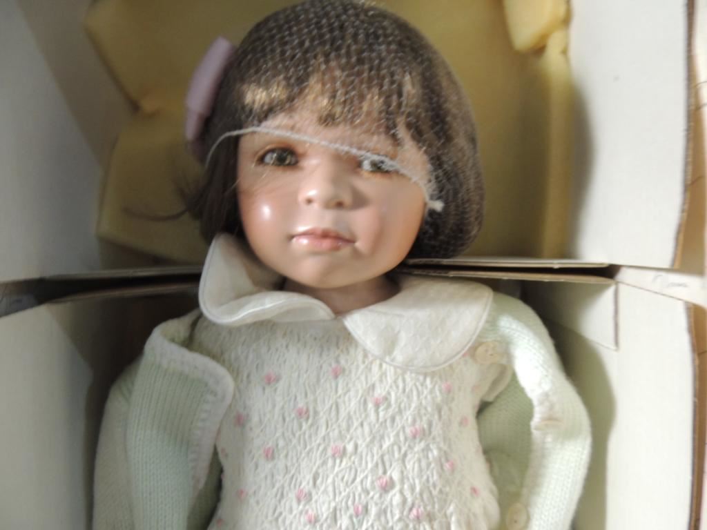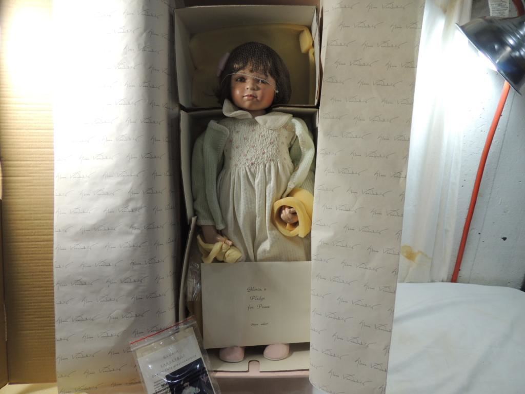 COLLECTIBLE DOLL, LARGE DOLL, ORIGINAL BOX, FROM PRIVATE DOLL COLLECTION, DESIGNER DOLL, LIMTED EDITION, COA, AS SHOWN SEE PHOTO FOR MORE DETAILS.