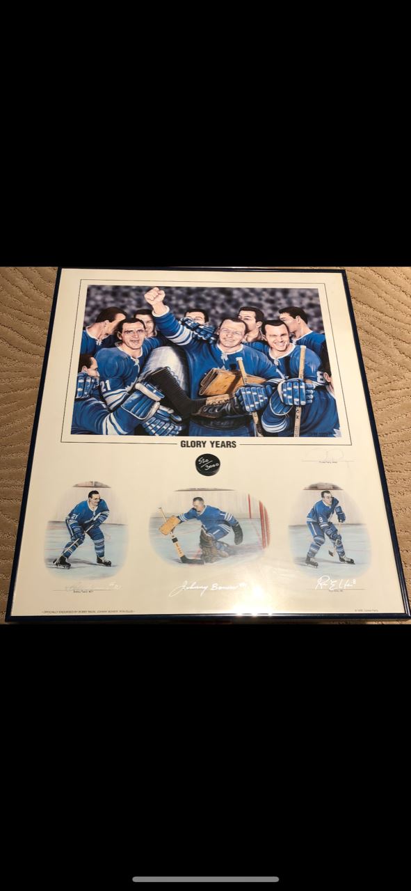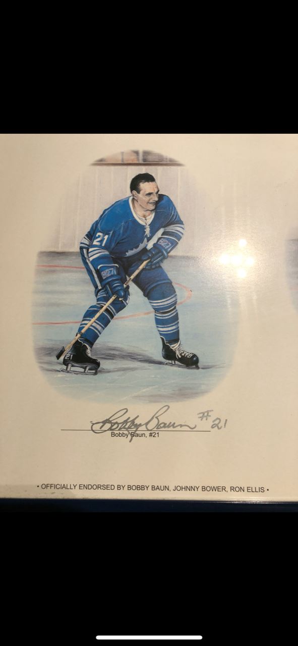 Glory Days Limited Edition Print by Daniel Parry. Featuring Bobby Baun, Johnny Bower and Ron Ellis of the Toronto Maple Leafs. Includes COA.