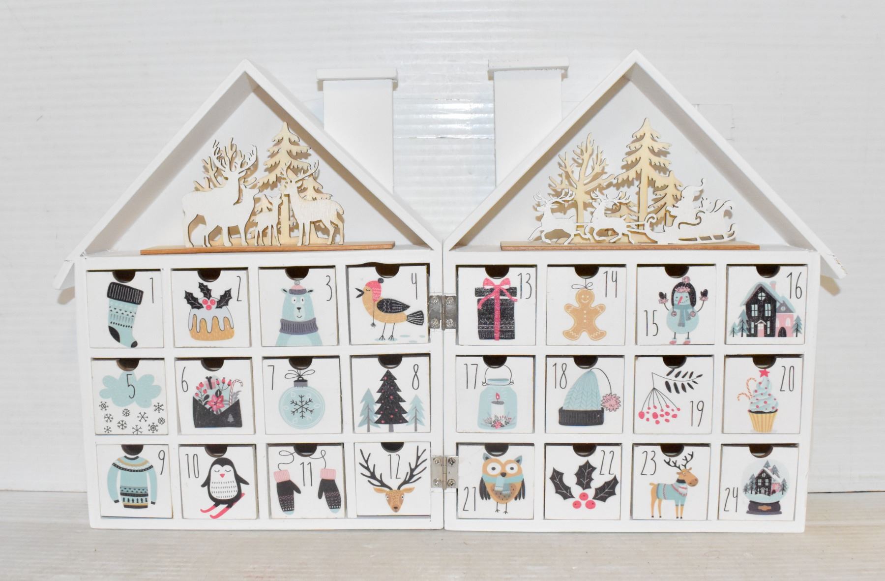 WOOD BOXES FOR EACH DAY TO STORE SURPRISES, REUSE YEAR AFTER YEAR, *SMALL CRACKS ON BOTH SIDES OF THE OUTER ROOF*