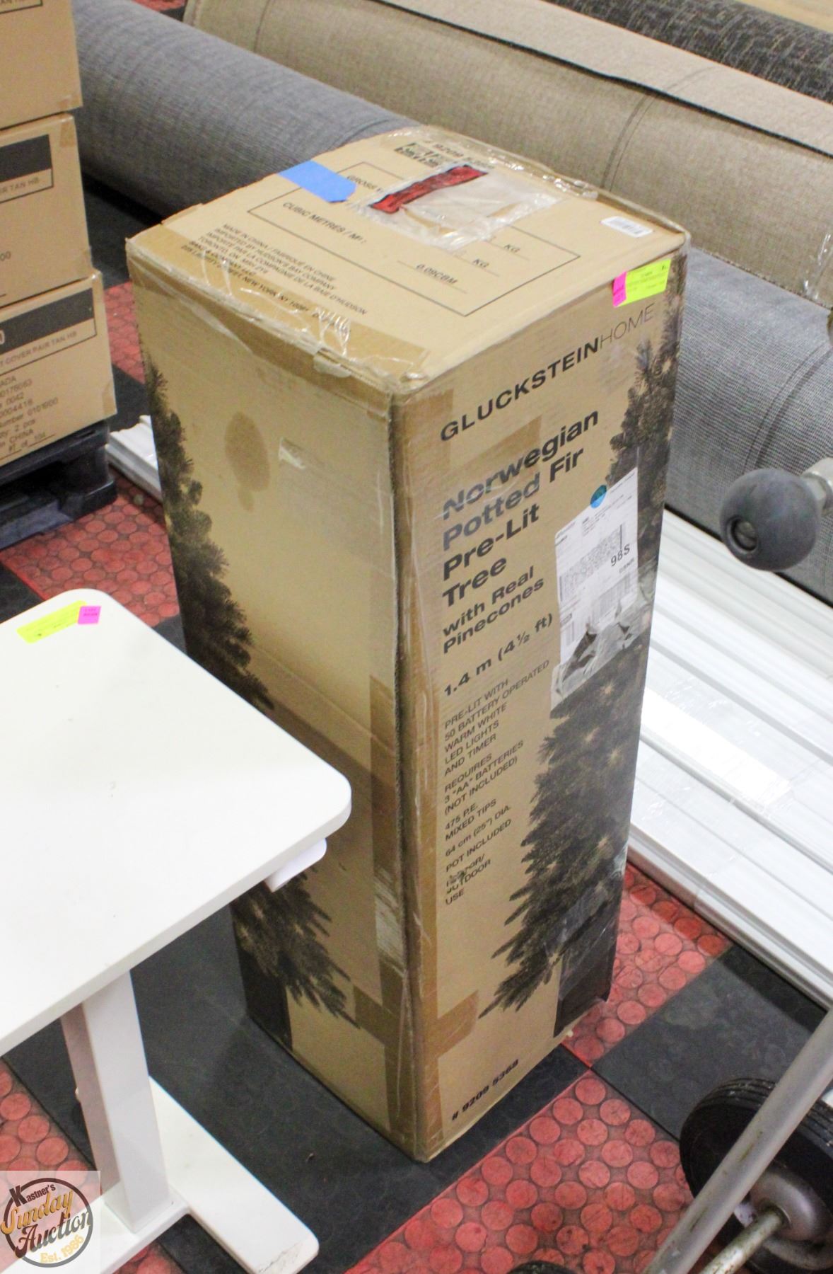 PRE-LIT TREE IN BOX **ALL ITEMS MUST BE REMOVED BY 5PM SATURDAY, NOVEMBER 29TH 2025. ALL REMAINING ITEMS WILL BE SUBJECT TO A $6.00 PER DAY STORAGE CHARGE. ANY ITEMS REMAINING AFTER MONDAY, DECEMBER 15TH 2025 WILL BE CONSIDERED FORFEITED. NO REFUNDS WILL BE ISSUED FOR FORFEITED ITEMS. TO SCHEDULE A PICK UP APPOINTMENT CLICK HERE