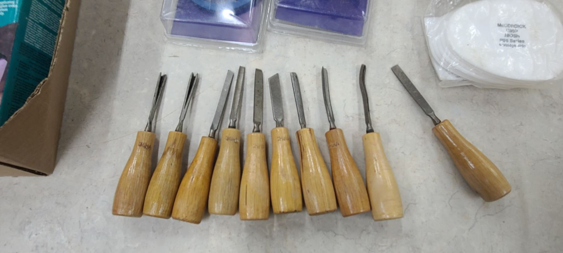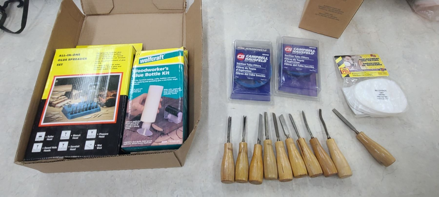 GLUE SPREADER SYSTEM, CARVING CHISEL SET AND MISC