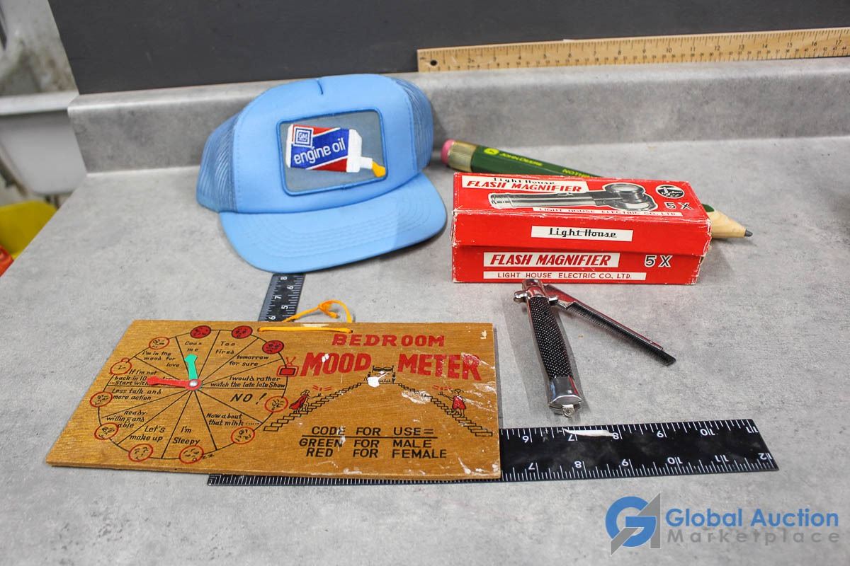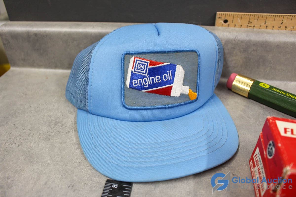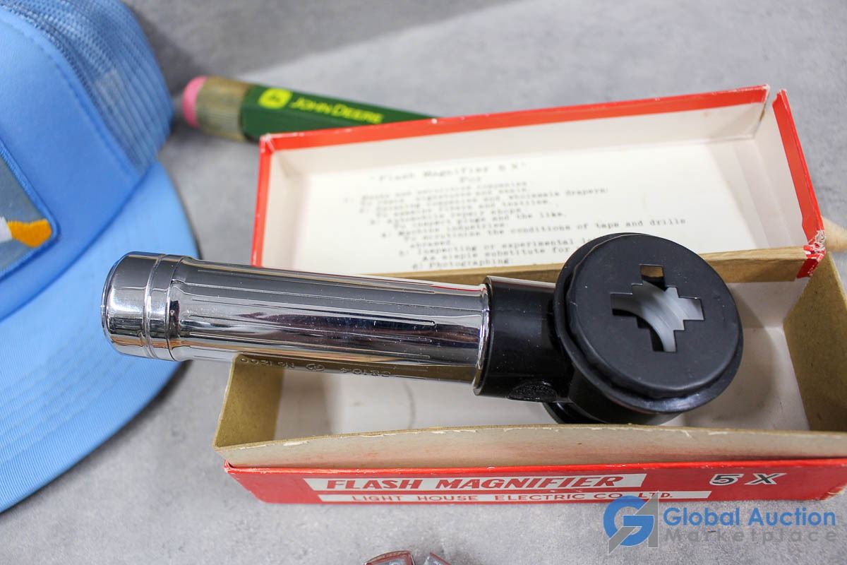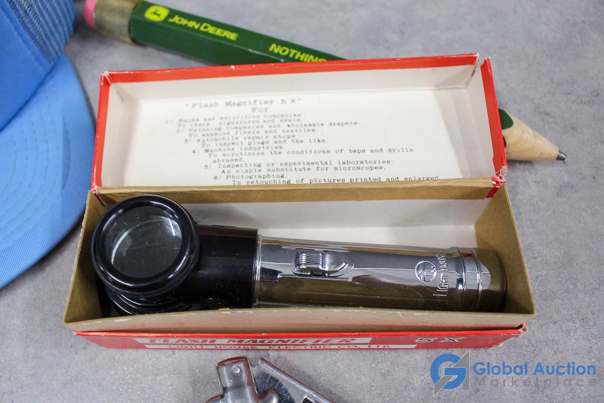 GM Hat, John Deere Pencil, Flash Magnifier w/Box & Related