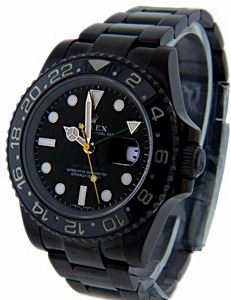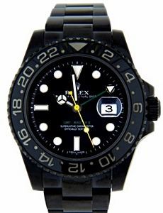 Manufacturer: Rolex , Model Name: GMT Master II , Model Number: 116710LN , Gender: Men's , Circa: 2010-2011 , Condition: Pre-Owned Excellent Condition , Case: Stainless Steel Custom Black PVD / DLC 40mm Width , Movement: Automatic GMT , Dial: Black Color Second Hand Customized to Yellow Color , Bezel: Stainless Steel Custom Black PVD / DLC Coated with Black Ceramic Insert , Crown: Stainless Steel Custom Black PVD / DLC Coated Bracelet/Strap: Oyster Stainless Steel Custom Black PVD/DLC Coated, Fits up to 8 Inches , Crystal: Sapphire , Calander: Quick-Set Date at Three o'Clock , Box/Papers: NONE