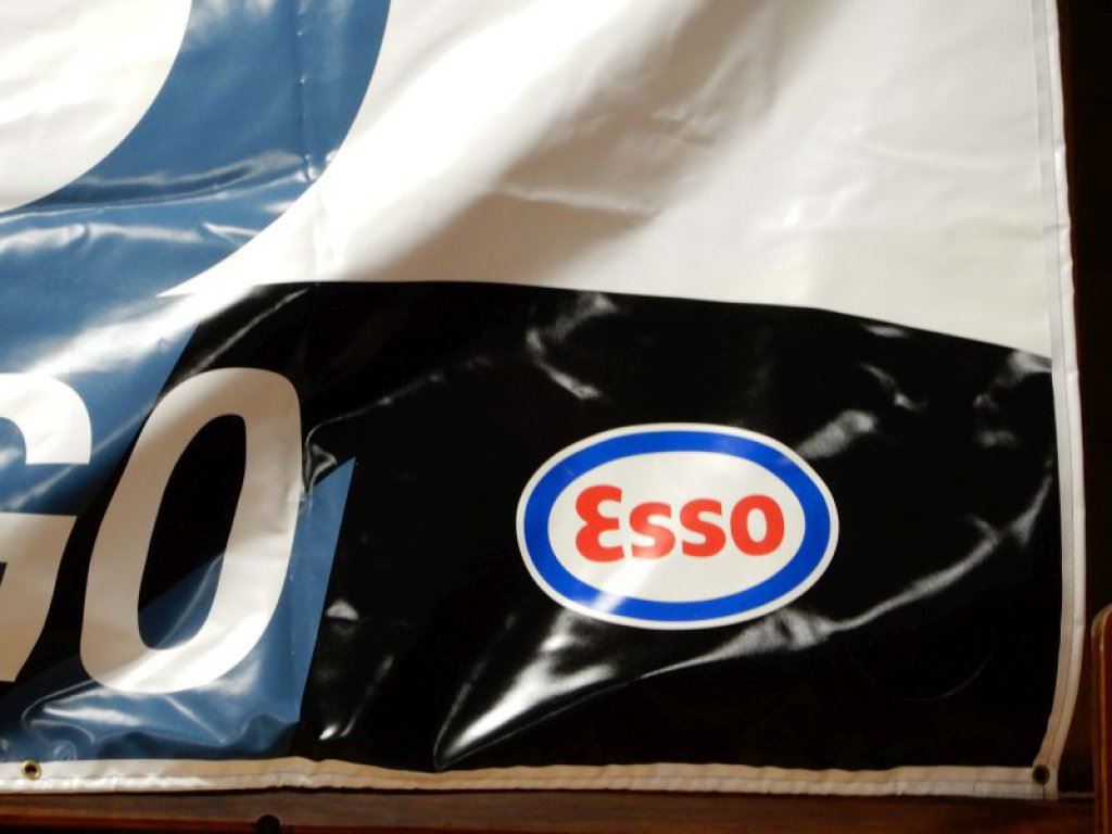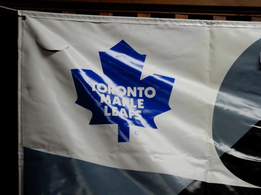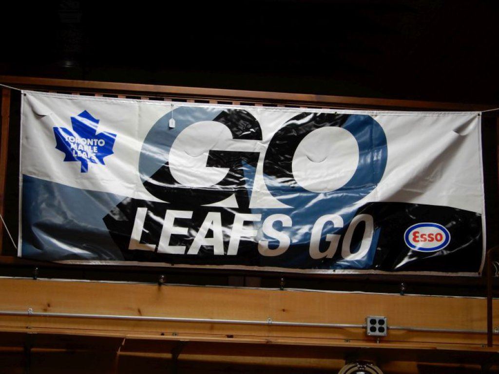 GO LEAFS GO NYLON BANNER ESSO & MAPLE LEAF SYMBOLS - 98" X 36" - GOOD CONDITION LOCATION: UPPER HANGING