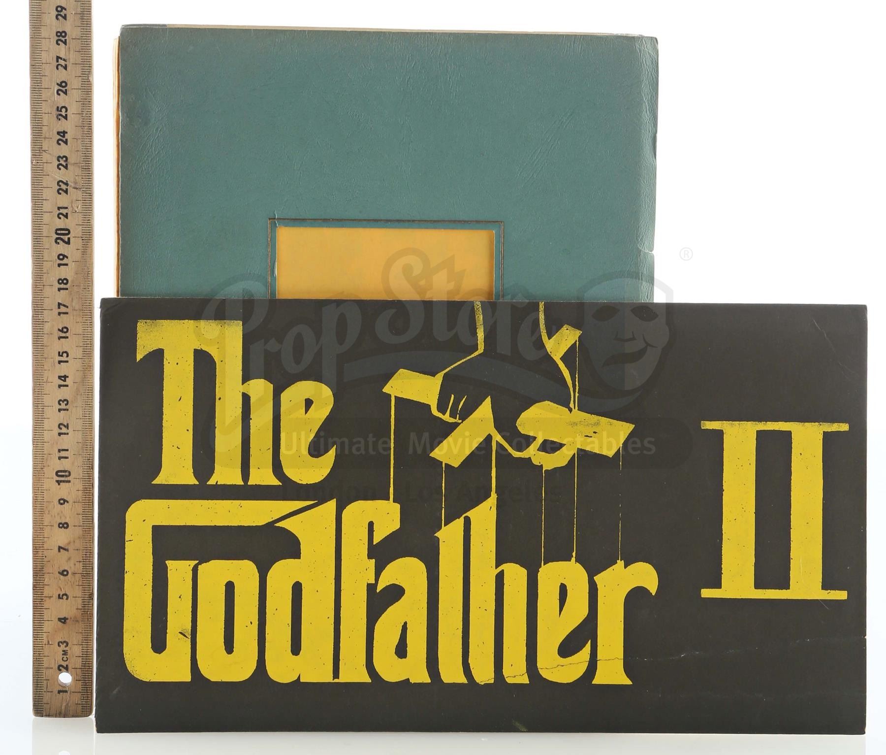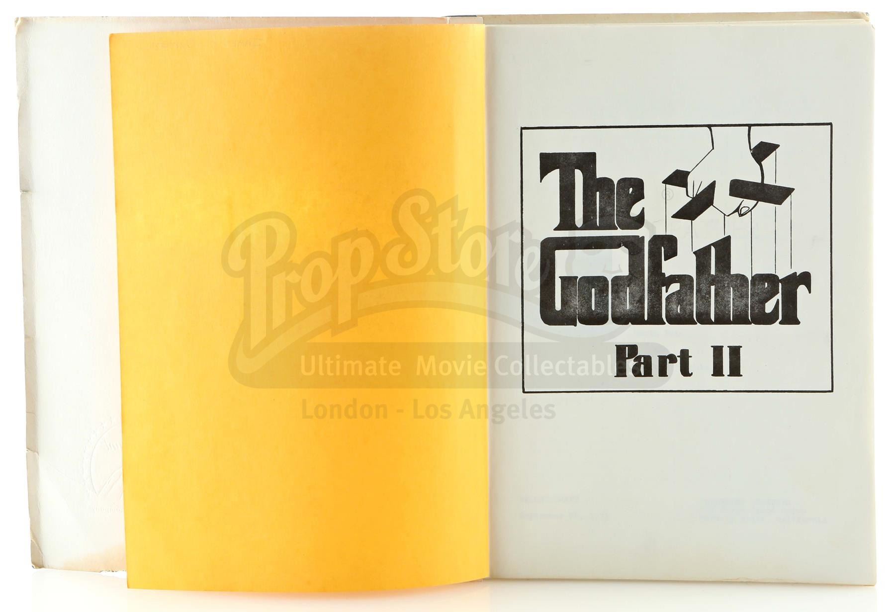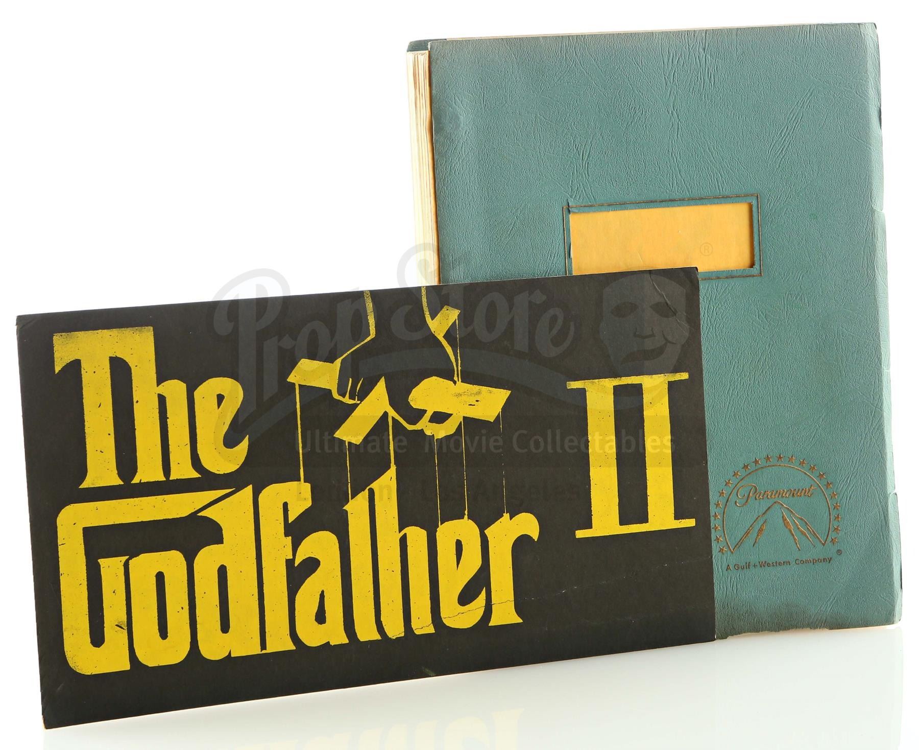 A script and dash card from Francis Ford Coppola's Academy Award-winning crime-drama sequel The Godfather: Part II. Michael Corleone (Al Pacino) ruthlessly continued expanding his criminal enterprise, while in flashback, we witnessed the early exploits of his father, Vito (Robert De Niro).