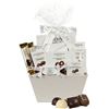 CHOCOLATES. RETAILS FOR $92.99. CONTAINS CHOCOLATE LAVA CAKE TRUFFLES, WHITE CHOCOLATE TRUFFLES, CREME BRULEE TRUFFLES, MILK CHOCOLATE COVERED BAVARIAN PRETZELS, DARK CHOCOLATE HOT COCOA, MILK CHOCOLATE CARAMEL "LION OF BELGIUM", DARK