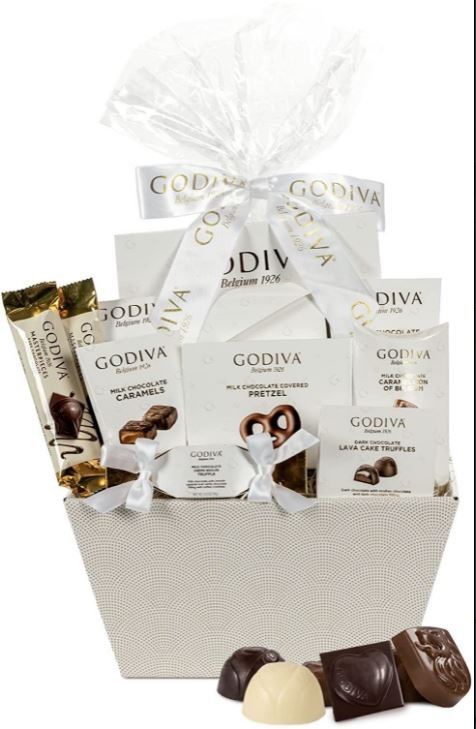 CHOCOLATES. RETAILS FOR $92.99. CONTAINS CHOCOLATE LAVA CAKE TRUFFLES, WHITE CHOCOLATE TRUFFLES, CREME BRULEE TRUFFLES, MILK CHOCOLATE COVERED BAVARIAN PRETZELS, DARK CHOCOLATE HOT COCOA, MILK CHOCOLATE CARAMEL "LION OF BELGIUM", DARK CHOCOLATE GANACHE HEART BAR, AND CHOCOLATE TRUFFLE COFFEE. BEST BEFORE 21/05/01