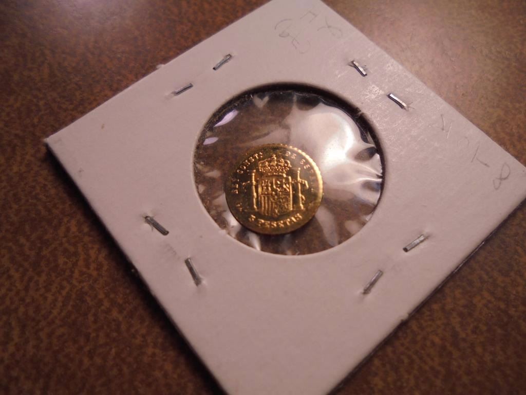 GOLD 1898 SPANISH 5 PESETAS MINI MEDAL