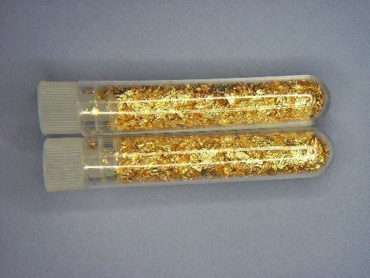 GILDED GOLD FLAKE IN A KEEPSAKE VIAL 2.5" X .5" EACH WEIGHS APPROX. 2.3 GRAMS
