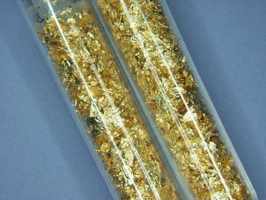 GILDED GOLD FLAKE IN A KEEPSAKE VIAL 2.5" X .5" EACH WEIGHS APPROX. 2.3 GRAMS