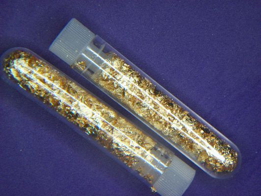 GILDED GOLD FLAKE IN A KEEPSAKE VIAL 2.5" X .5" EACH WEIGHS APPROX. 2.3 GRAMS