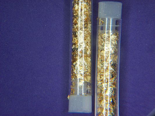GILDED GOLD FLAKE IN A KEEPSAKE VIAL 2.5" X .5" EACH WEIGHS APPROX. 2.3 GRAMS