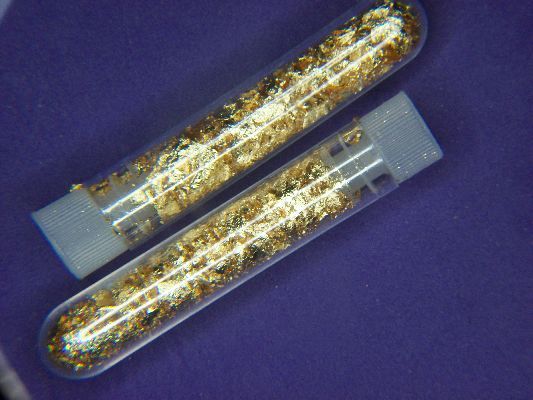 GILDED GOLD FLAKE IN A KEEPSAKE VIAL 2.5" X .5" EACH WEIGHS APPROX. 2.3 GRAMS