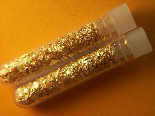 GILDED GOLD FLAKE IN A KEEPSAKE VIAL 2.5" X .5" EACH WEIGHS APPROX. 2.3 GRAMS