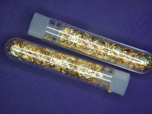 GILDED GOLD FLAKE IN A KEEPSAKE VIAL 2.5" X .5" EACH WEIGHS APPROX. 2.3 GRAMS