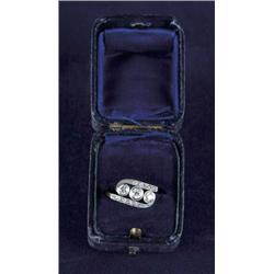 Lot # 1442 GOLD AND DIAMOND RING. The shank in yellow gold, the diamonds set in white gold. Three full cut diamonds, side by side, flanked by a row containing five small diamonds. CONDITION: Good. 9-98662 (1,000-1,500)