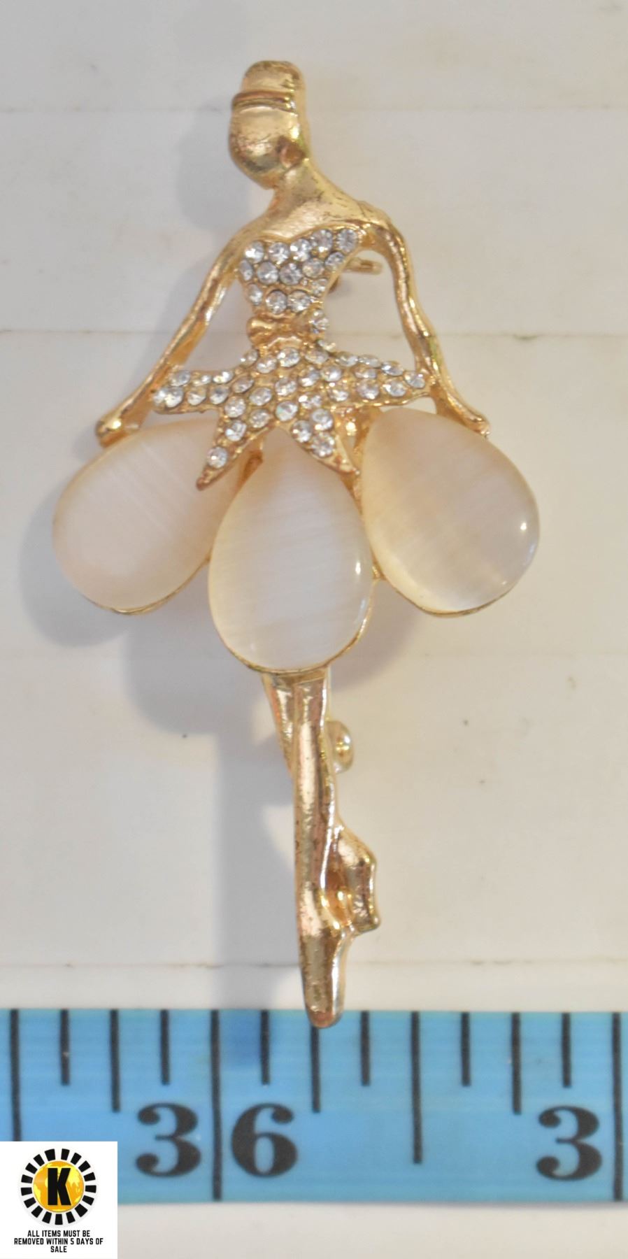 GOLD AND JEWELED TONE BALLERINA BROACH