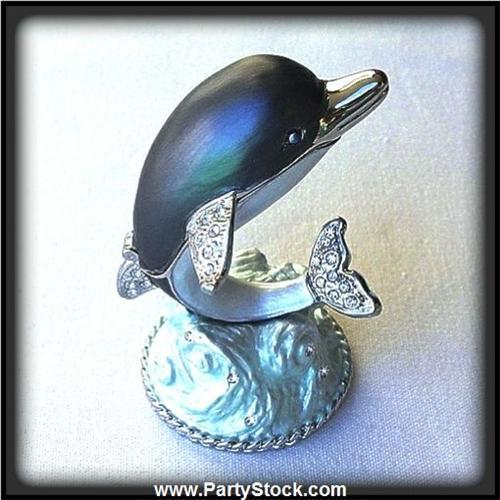 GOLD AUSTRIAN CRYSTAL JUMPING DOLPHIN JEWELRY BOX